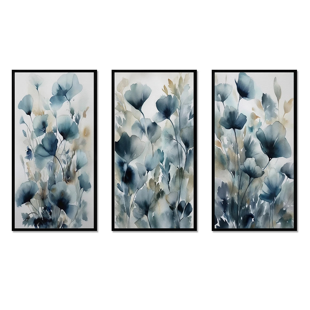 This beautiful Blue Leaf Foliage And Flowers III Collage Set of 3 Wall art is printed on premium quality cotton canvas using the finest fade-resistant ink. With options like Wrapped Canvas and Floater Framed Wall Decor, we offer a versatile range to cater to your unique aesthetic preferences. The Wrapped Canvas Art is stretched tautly over a sturdy wooden frame, giving your artwork a sleek, borderless appearance. For those who desire a touch of elegance and depth, our floater-framed canvas art is the ideal choice. The Canvas set is delicately mounted within a floating frame, creating a striking visual contrast between the artwork and the frame. Our collection offers an array of frame colors to complement your interior design, Ensuring that your wall art set seamlessly integrates with your home or office decor.