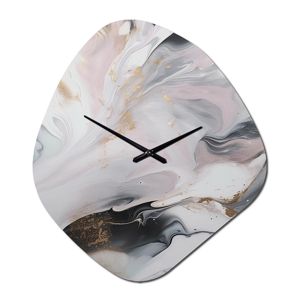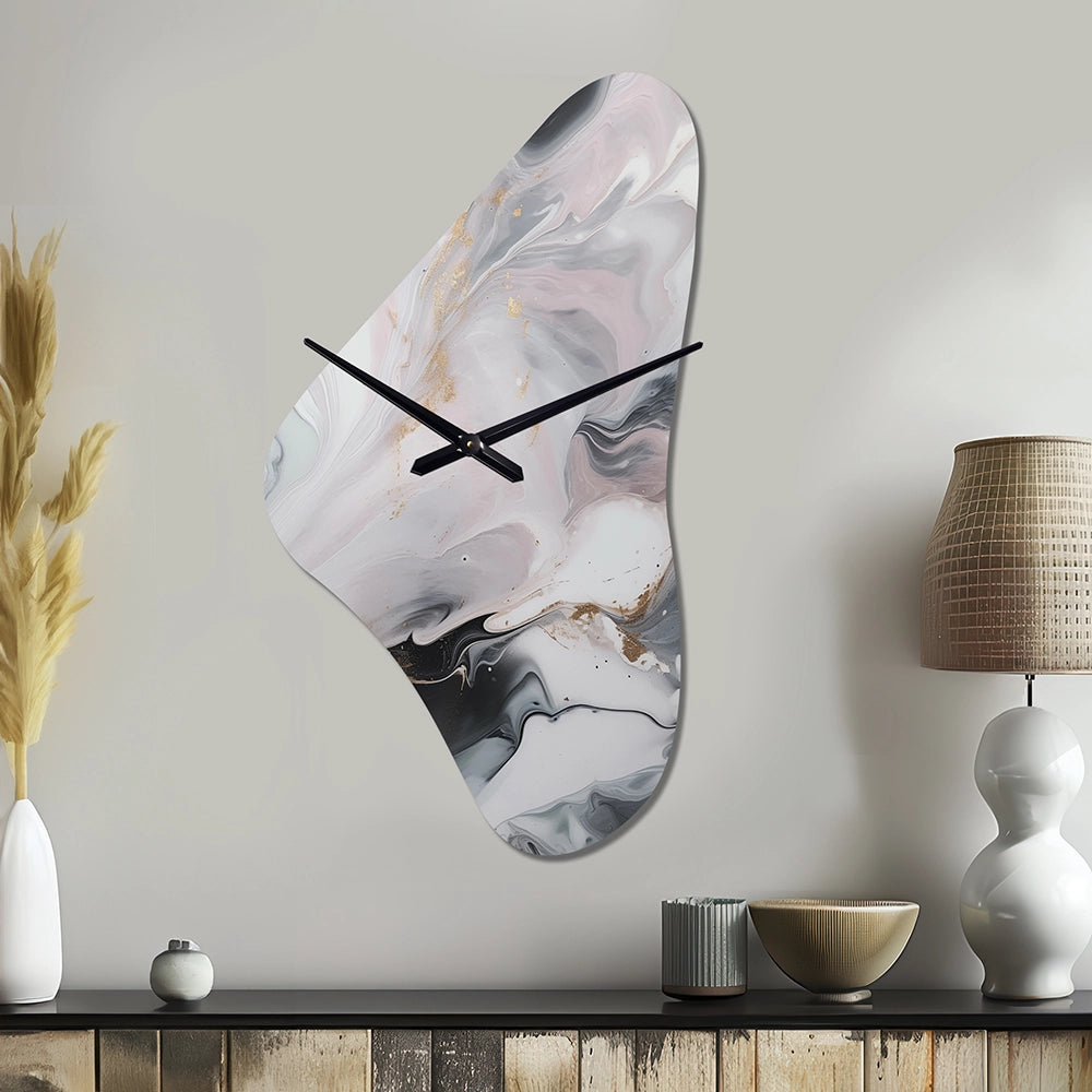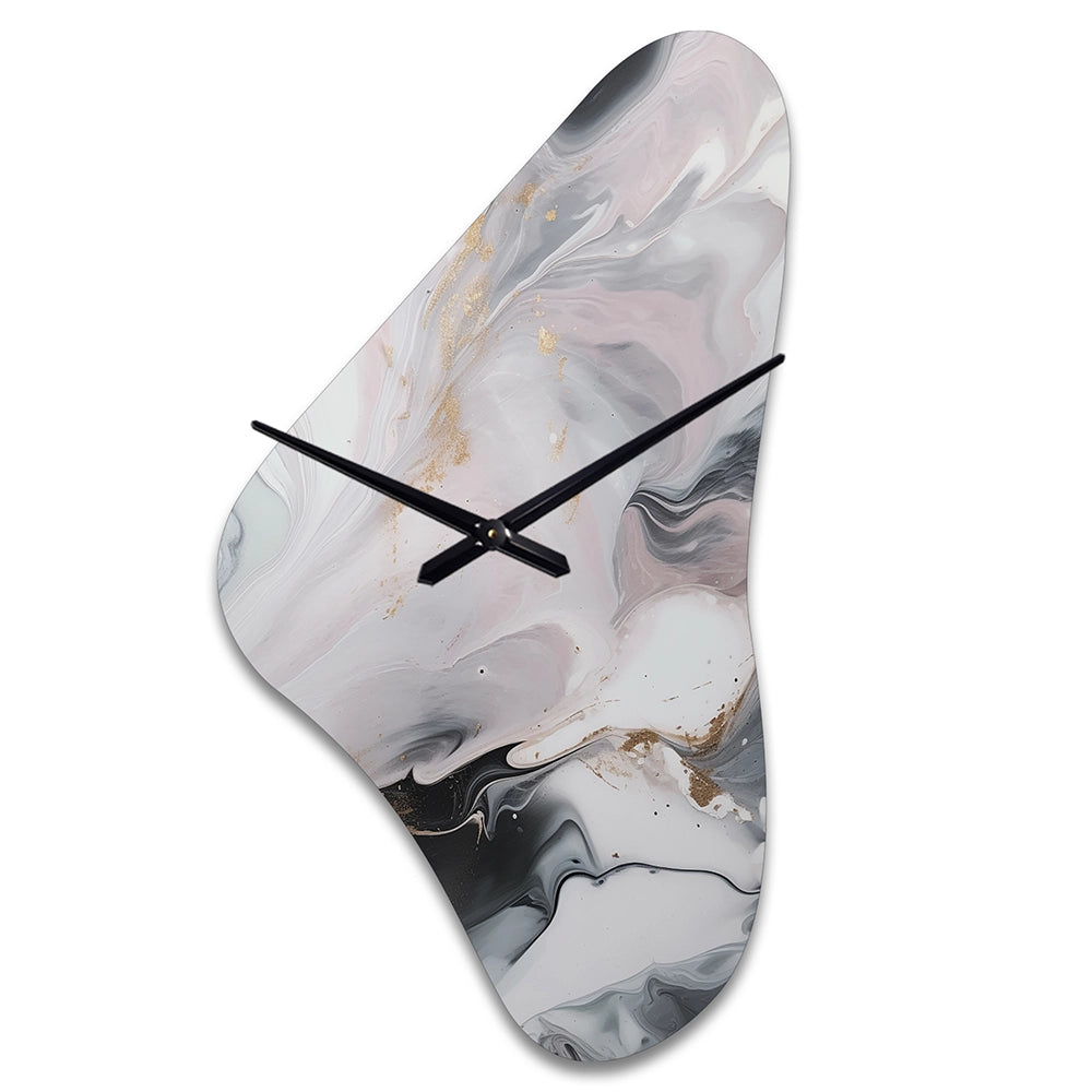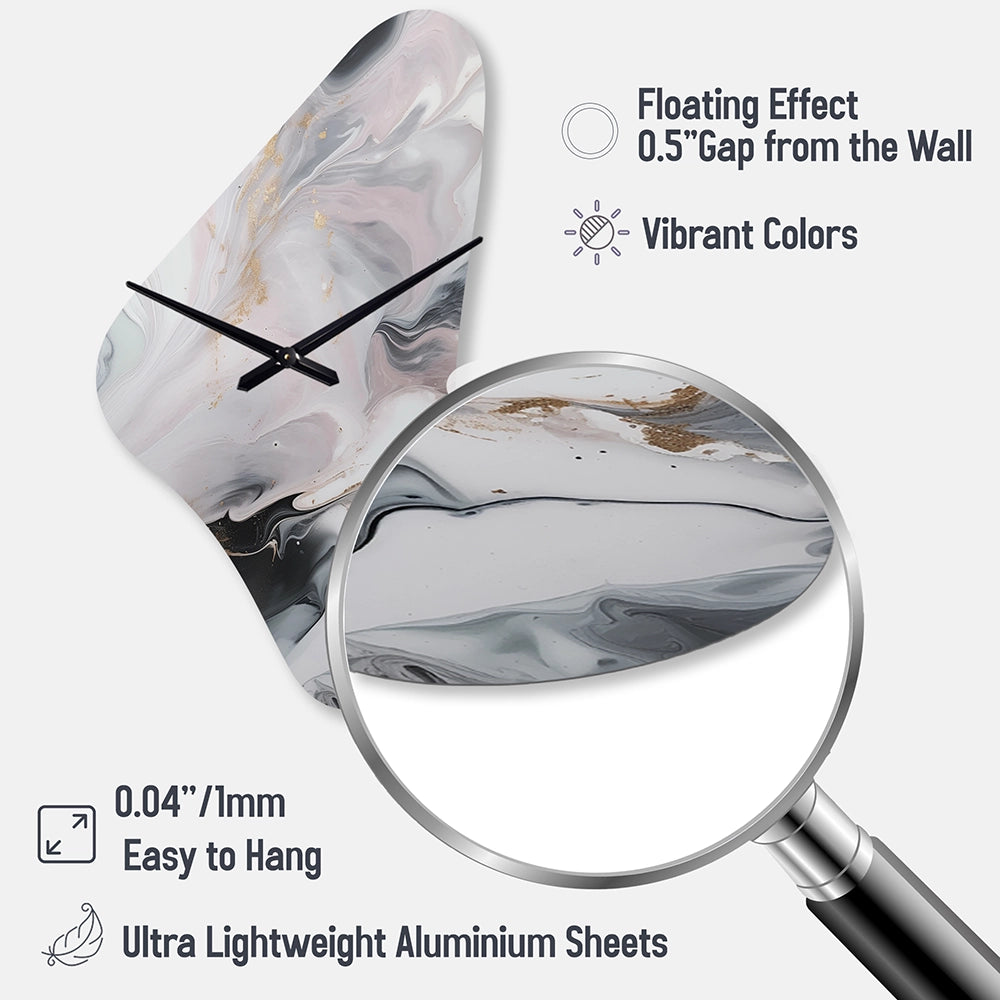 White And Grey Ripples Of Stone II - Asymmetric Metal Wall Clock