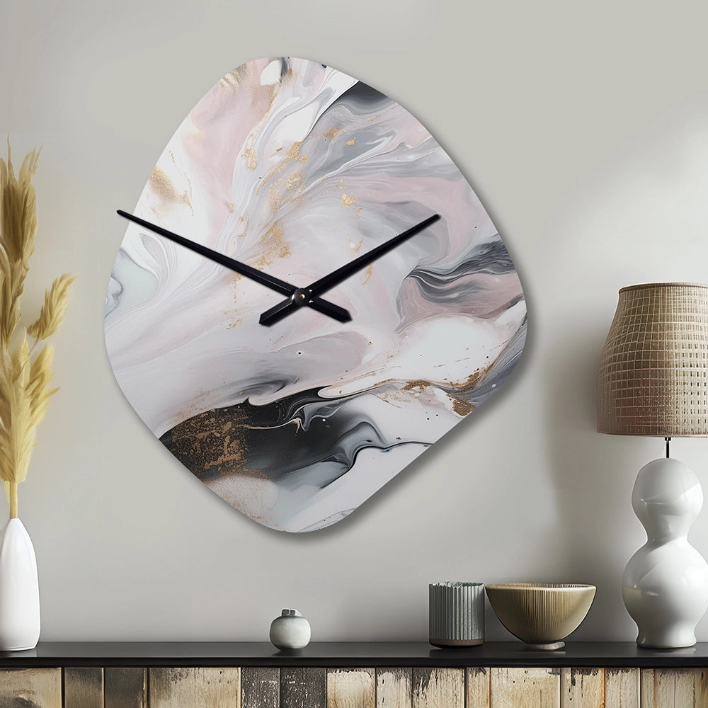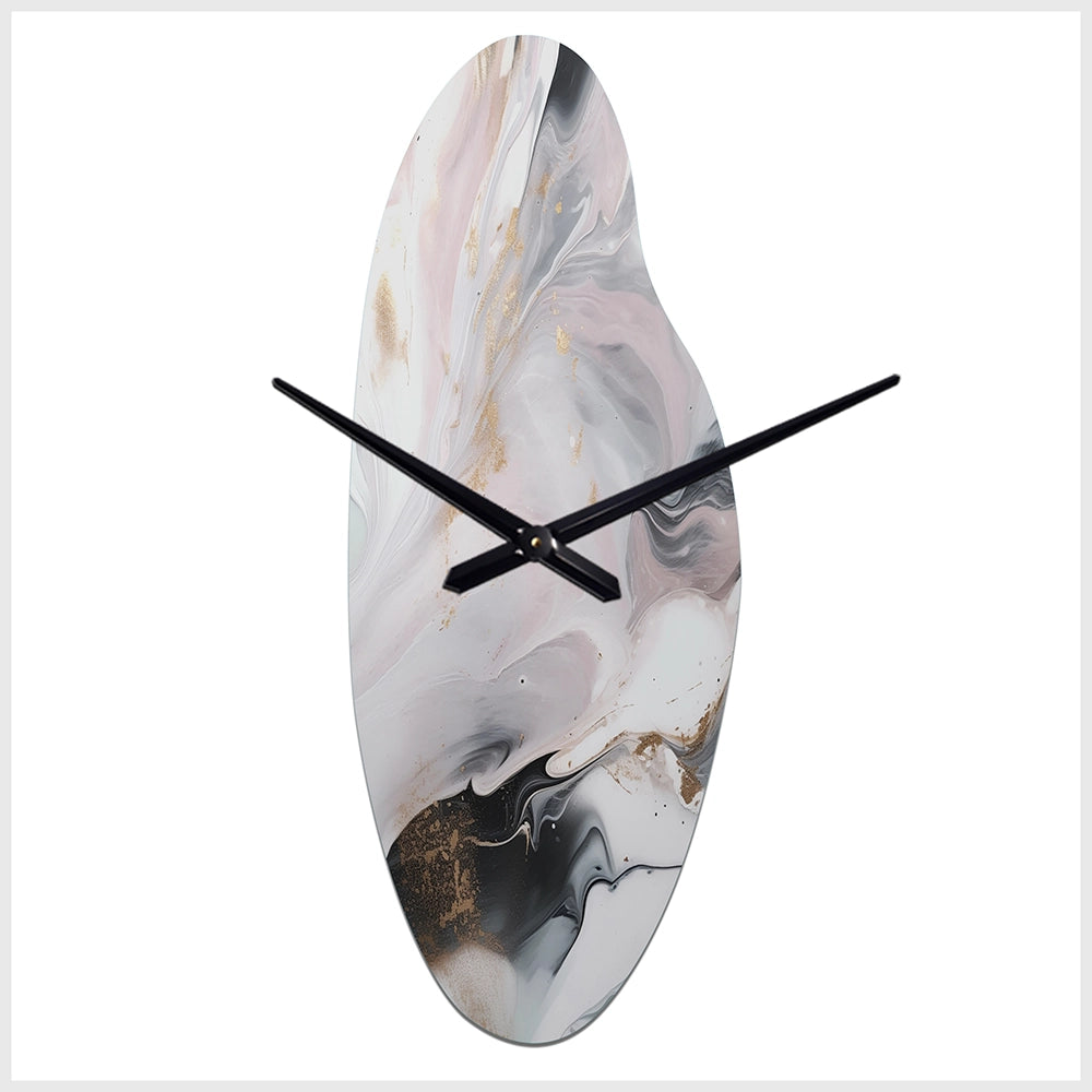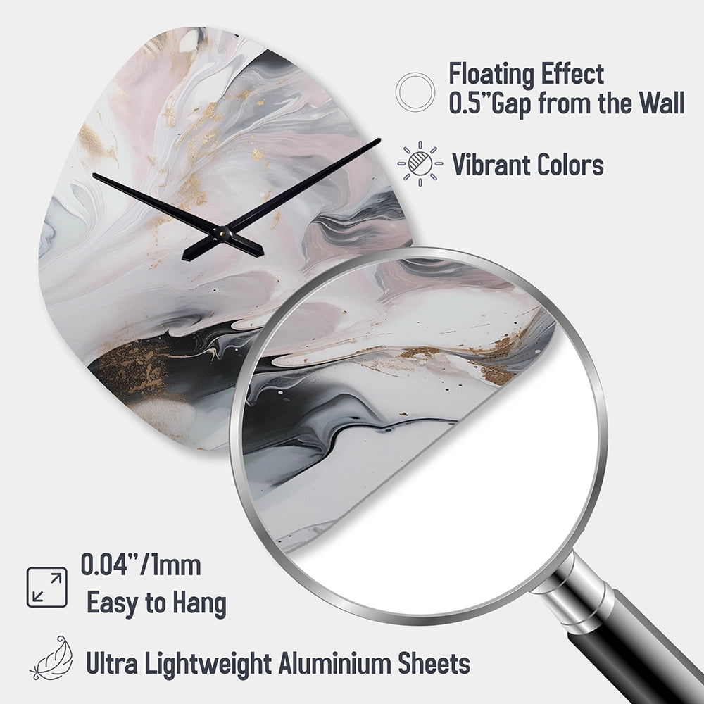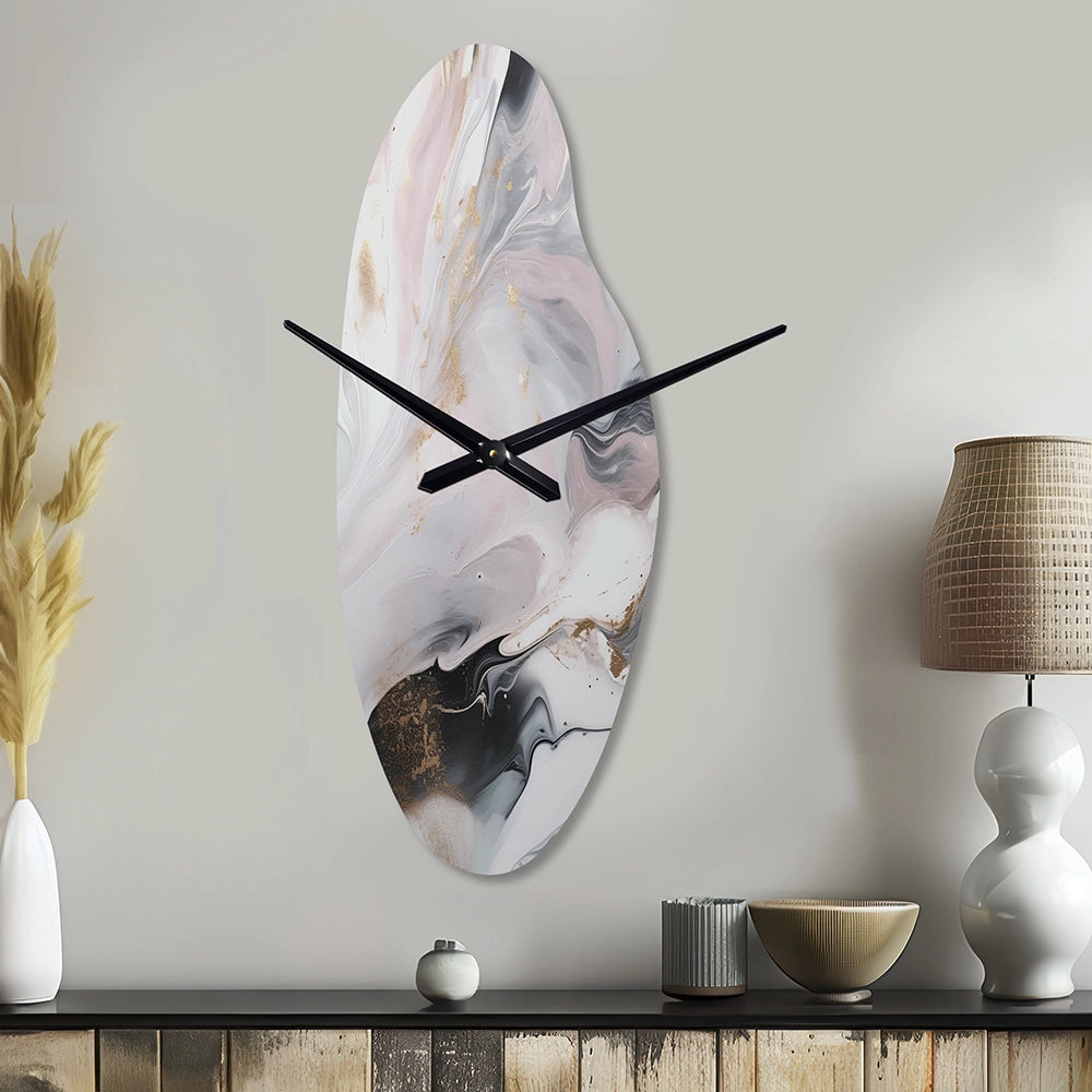 White And Grey Ripples Of Stone II - Asymmetric Metal Wall Clock