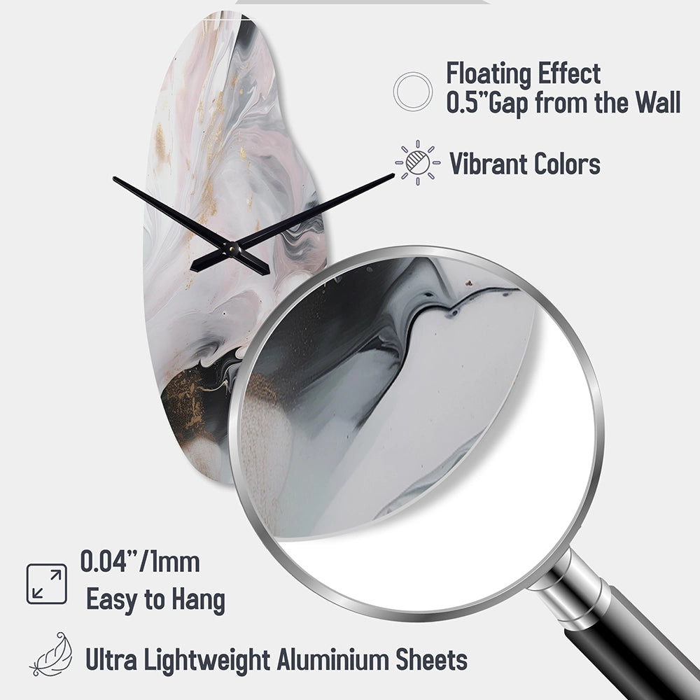 Elevate your space with this Modern asymmetrical metal wall Clock. Our handcrafted metal wall sculptures combine modern design with artistic elegance, creating a striking focal point in any room. This asymmetric metal wall Clock features unique, irregular shapes that bring dynamic movement and depth to your walls. Perfect for Abstract decor, these White irregular metal wall sculptures are printed on aluminum panel, with extra gloss ensuring long-lasting beauty. Ideal for living rooms, offices decor, or entrance, this statement piece adds a bold, Abstract touch to any decor.