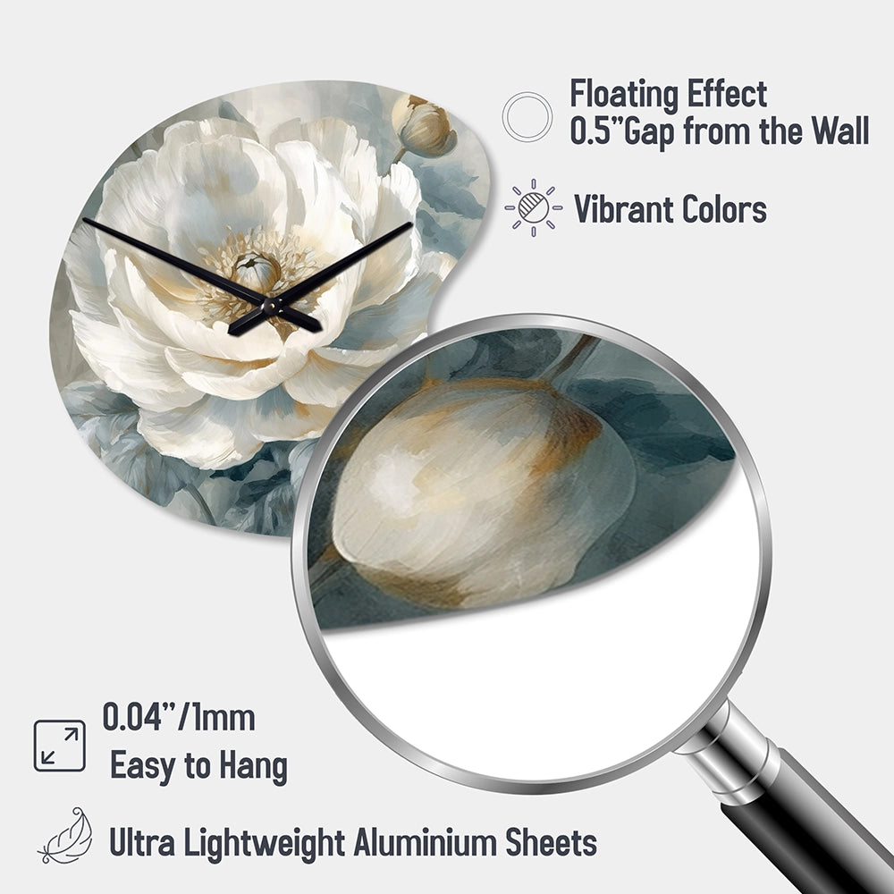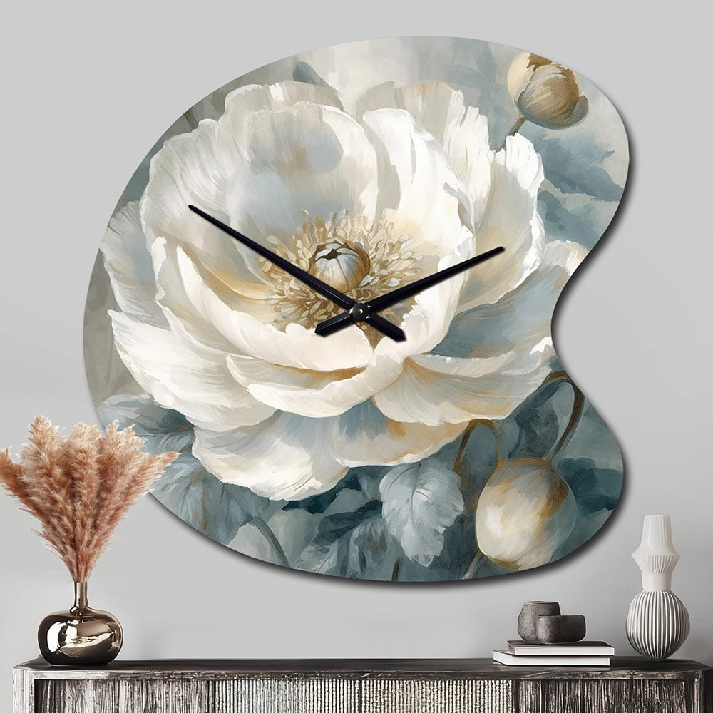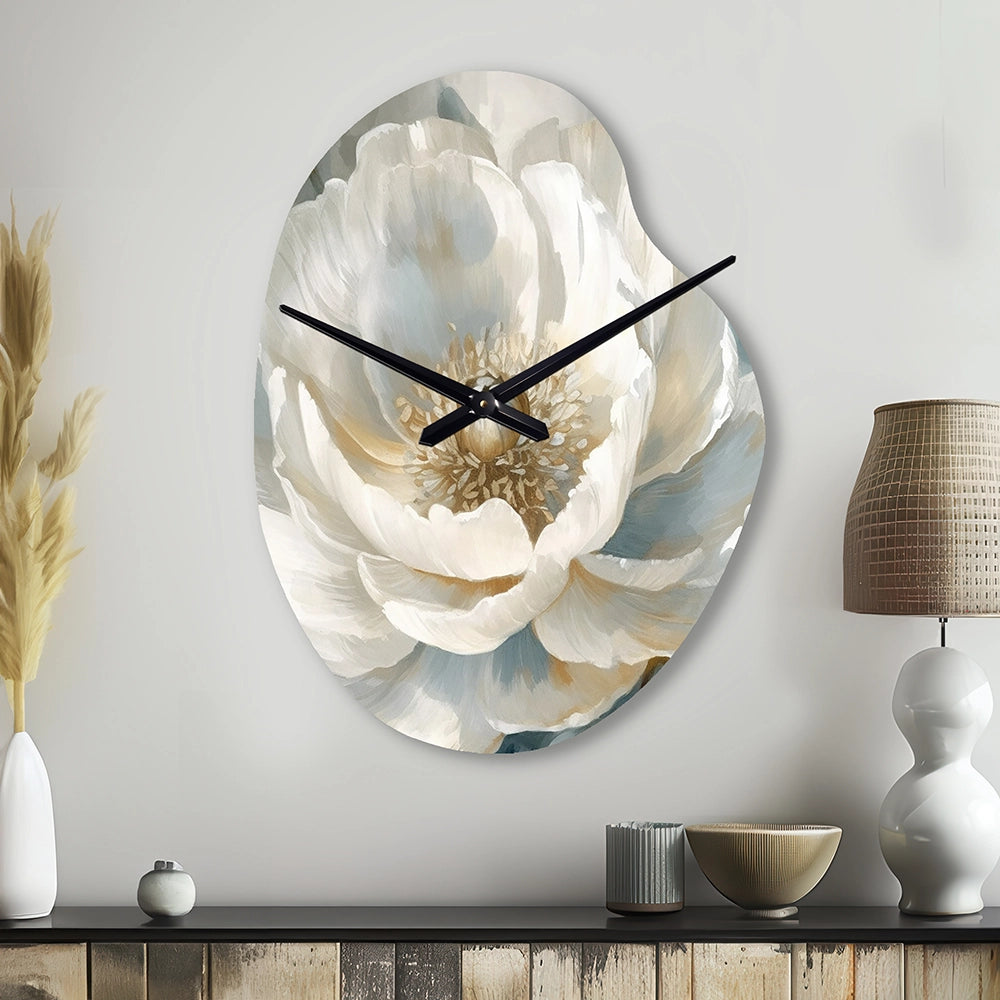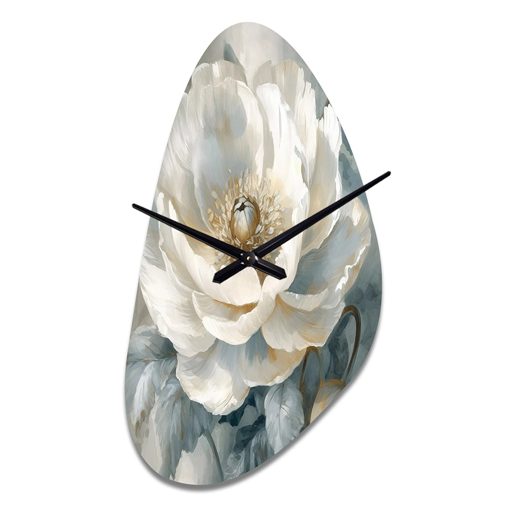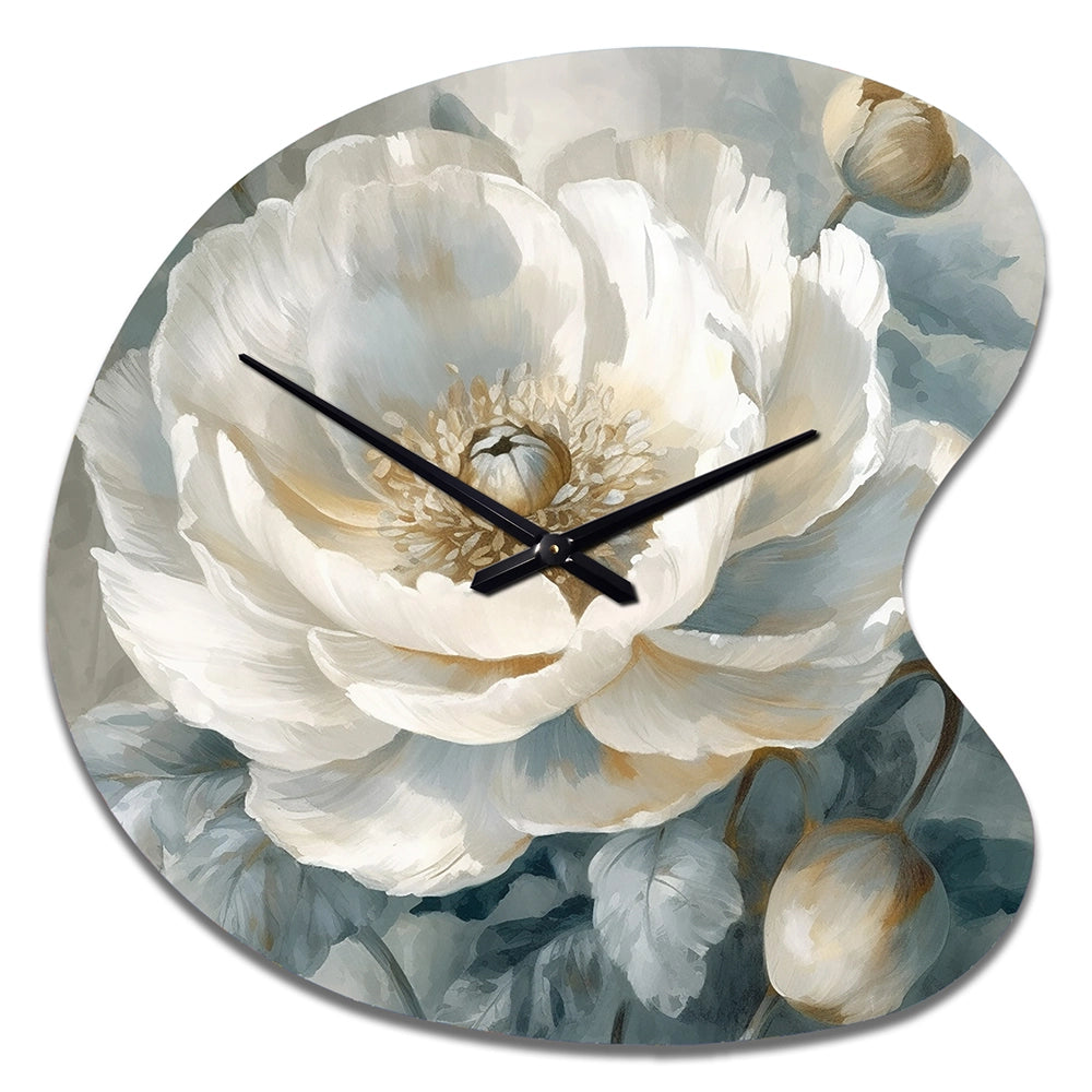 White Blue Peonies Symphony I - Asymmetric Metal Wall Clock