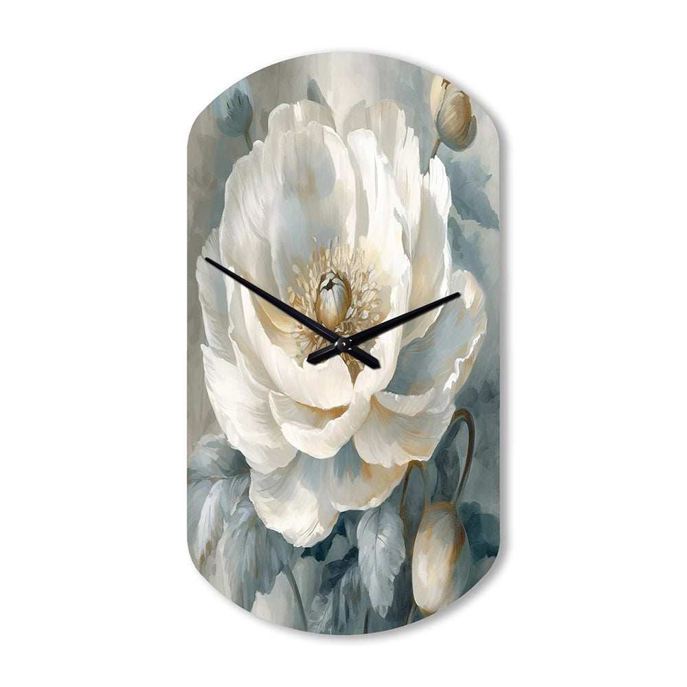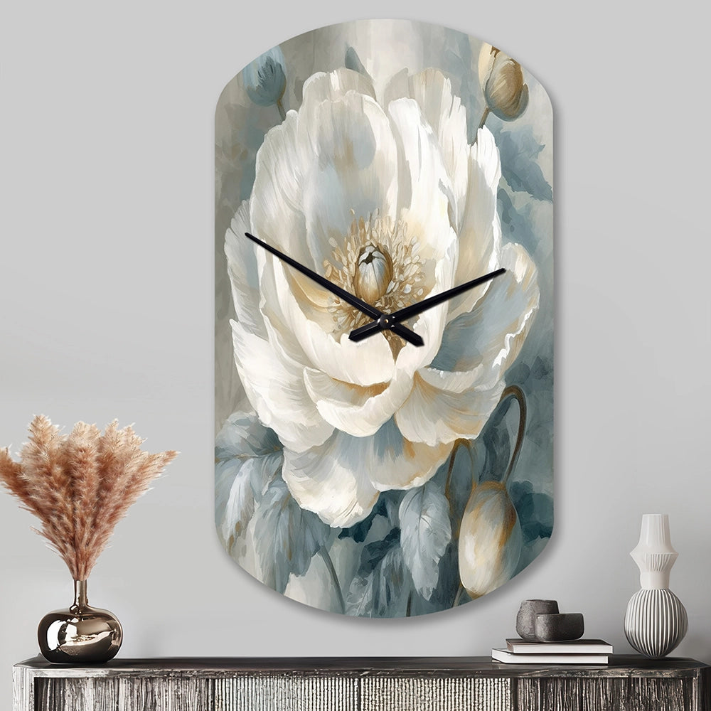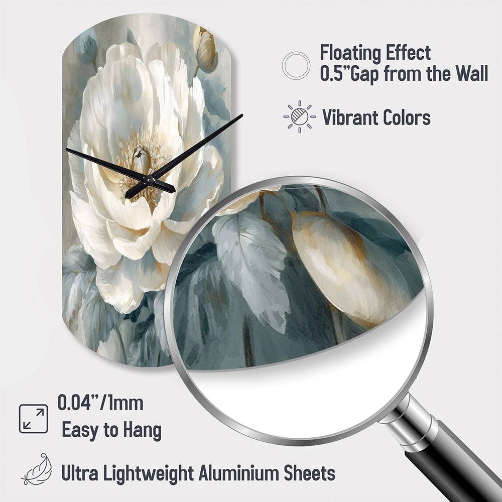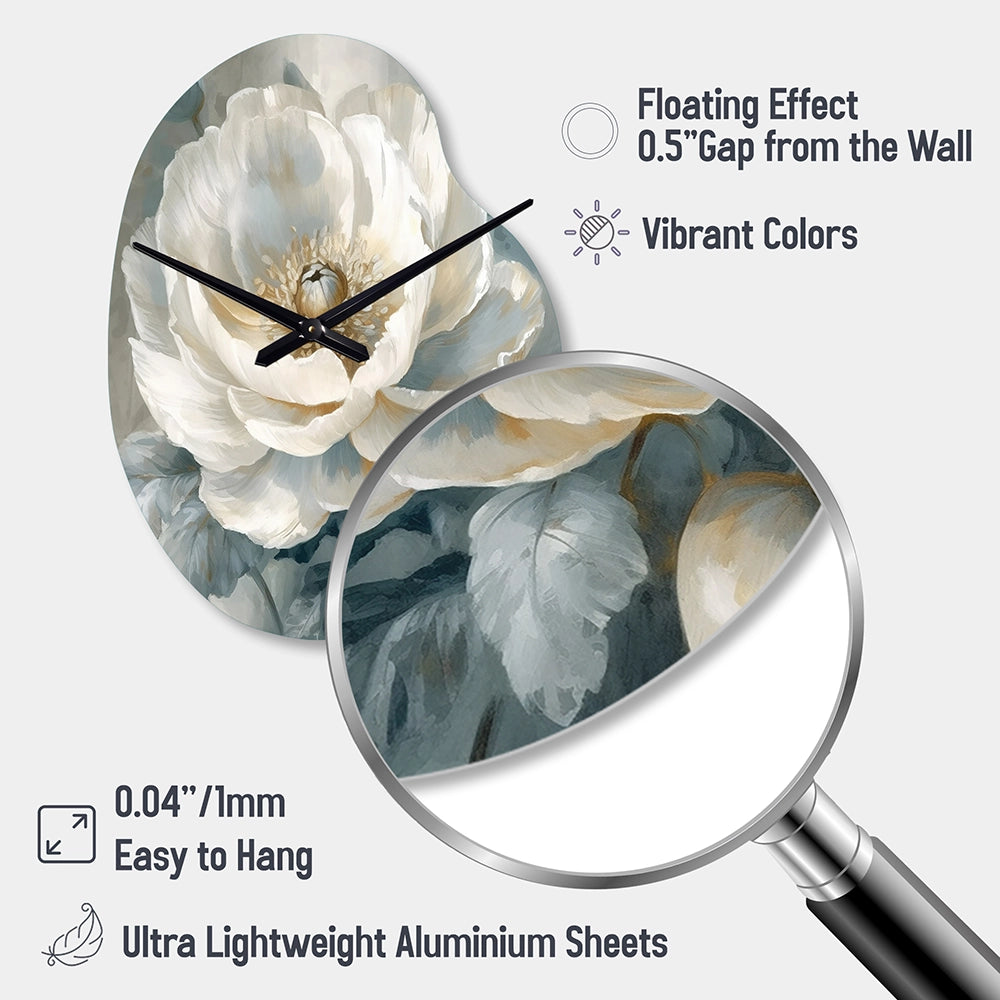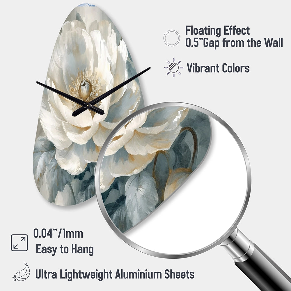 White Blue Peonies Symphony I - Asymmetric Metal Wall Clock