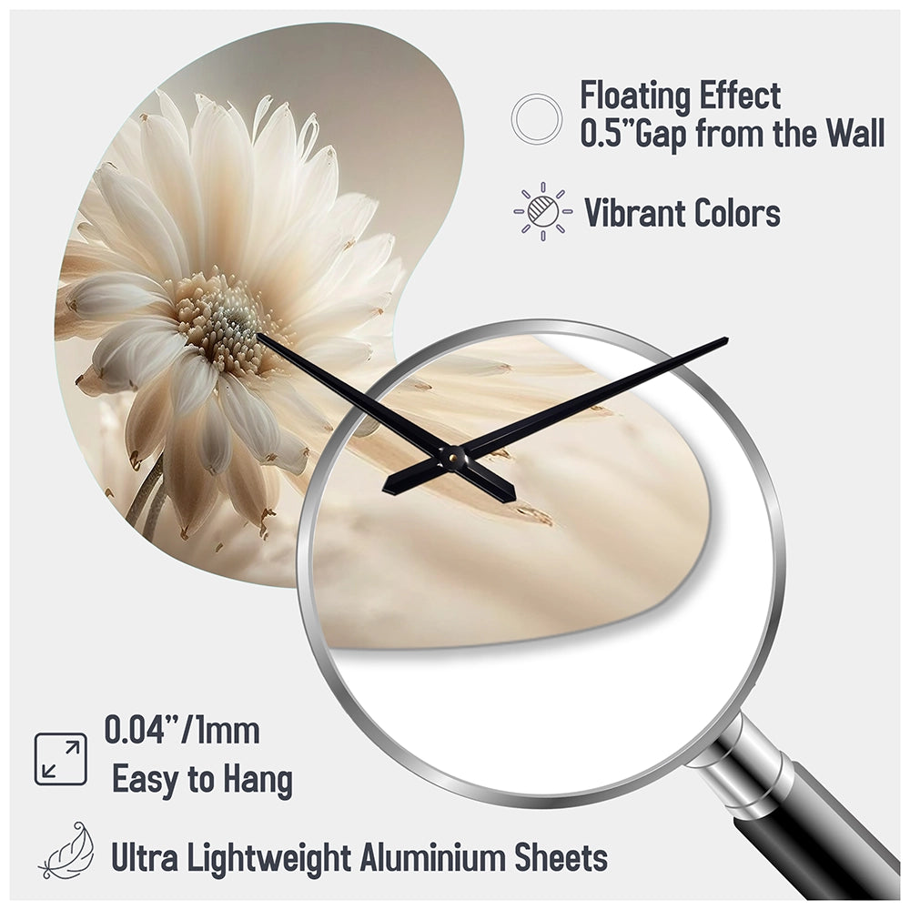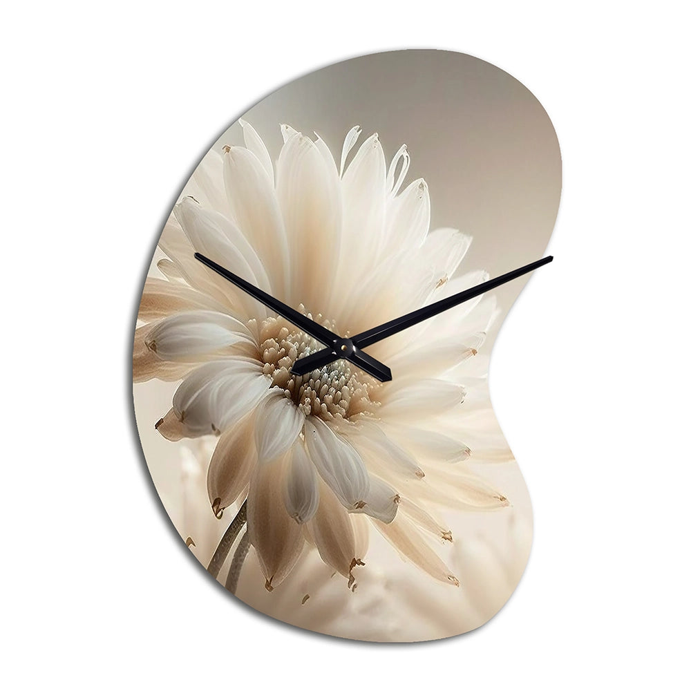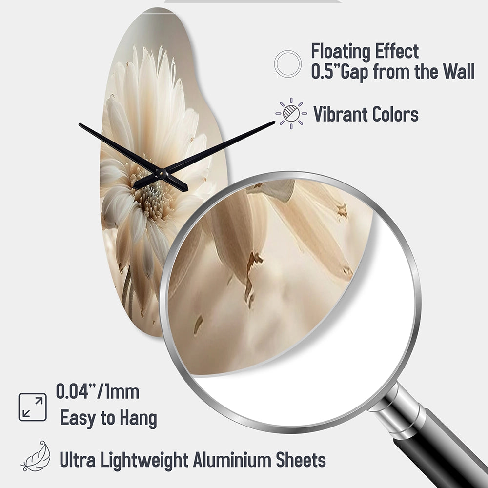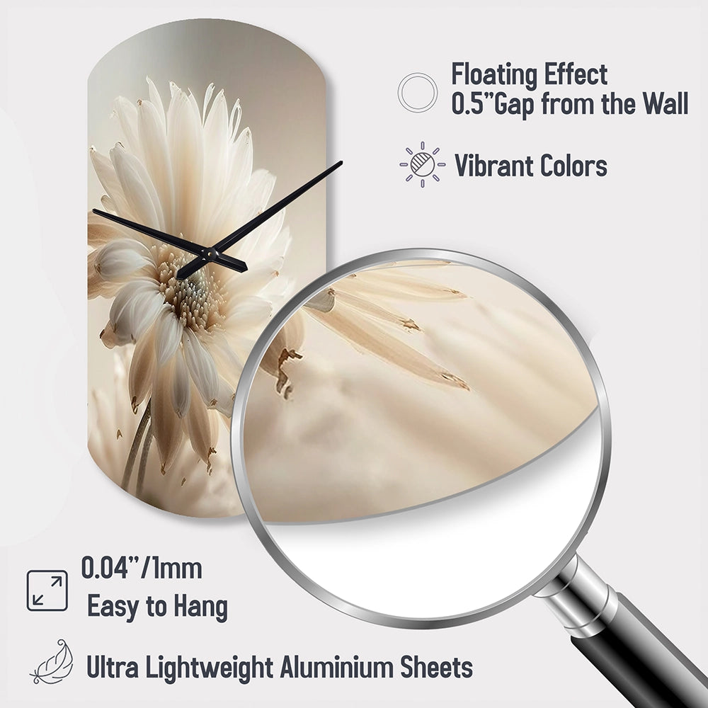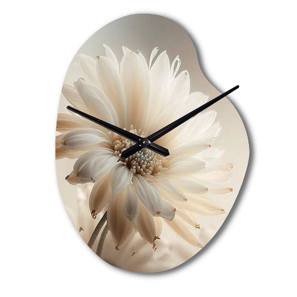 White Gerbera Flowers III - Asymmetric Metal Wall Clock