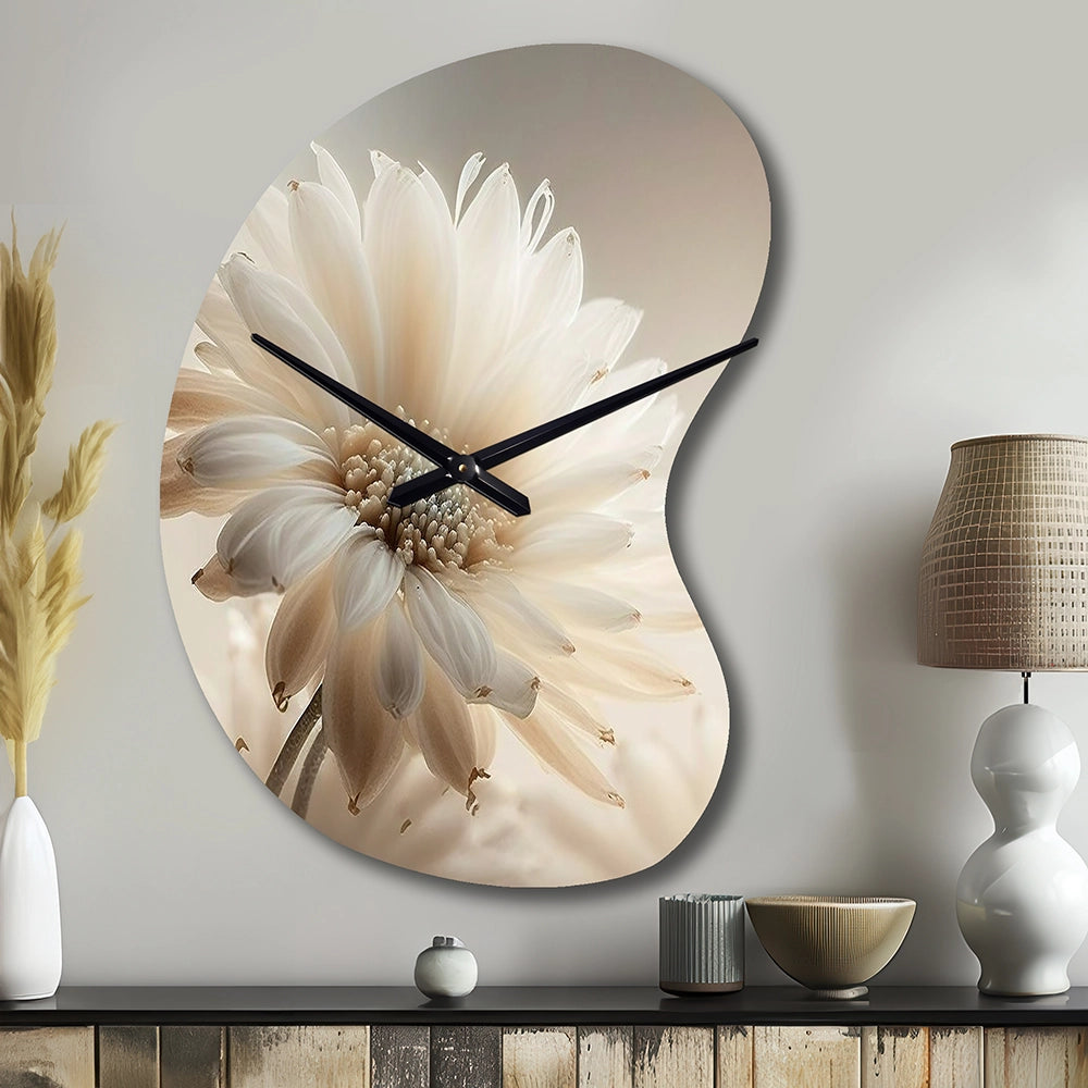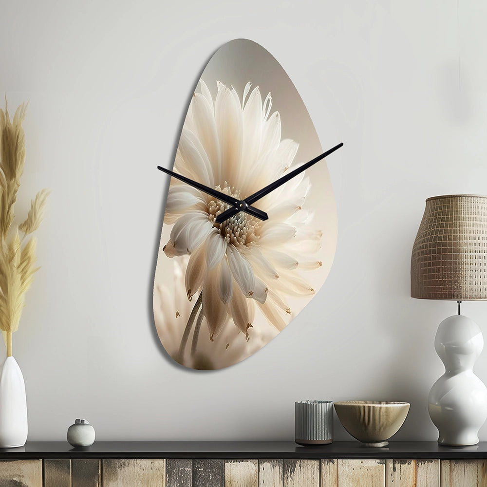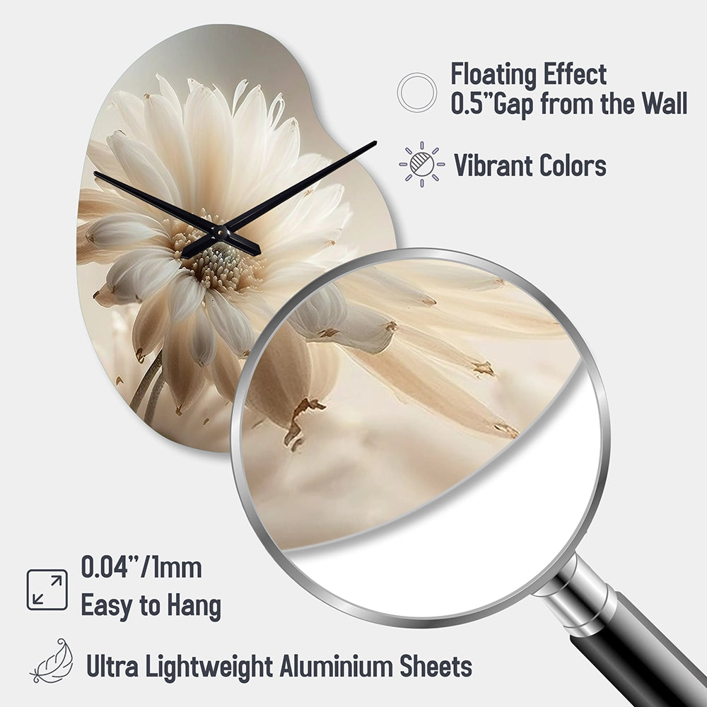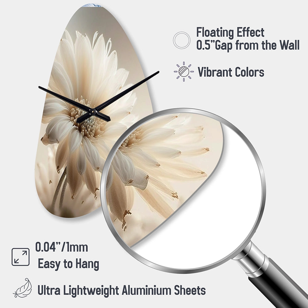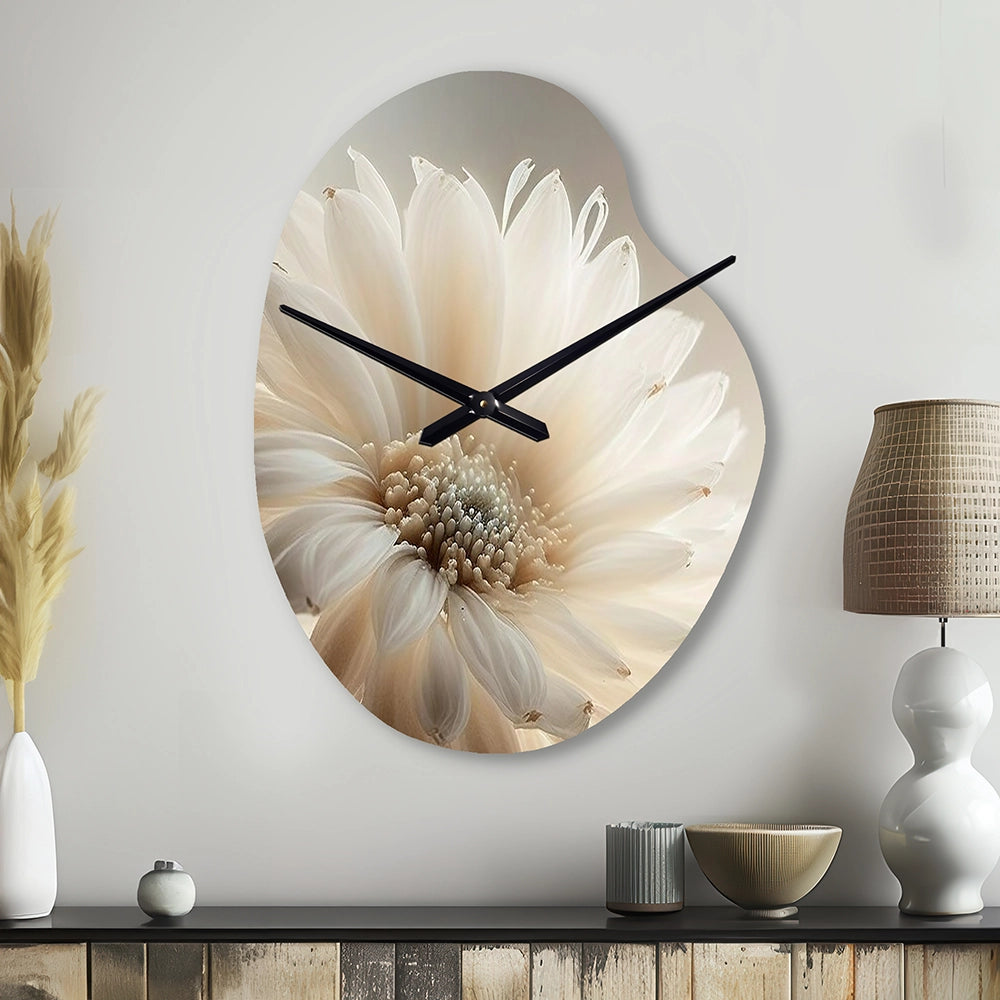 White Gerbera Flowers III - Asymmetric Metal Wall Clock