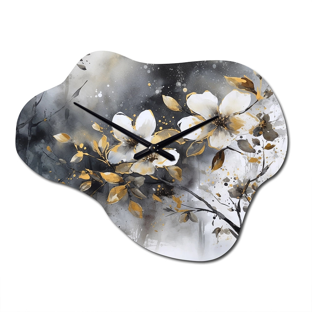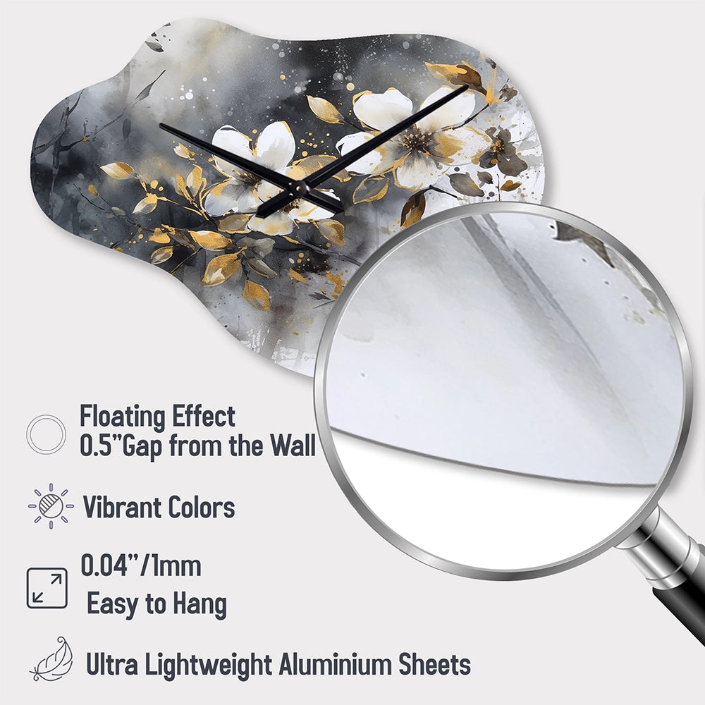 White Gold Daisy Tranquility - Asymmetric Metal Wall Clock