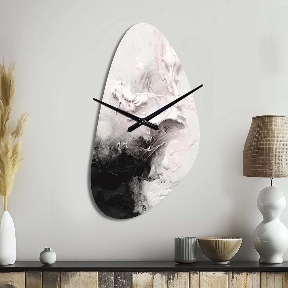Elevate your space with this Modern asymmetrical metal wall Clock. Our handcrafted metal wall sculptures combine modern design with artistic elegance, creating a striking focal point in any room. This asymmetric metal wall Clock features unique, irregular shapes that bring dynamic movement and depth to your walls. Perfect for Abstract decor, these White irregular metal wall sculptures are printed on aluminum panel, with extra gloss ensuring long-lasting beauty. Ideal for living rooms, offices decor, or entrance, this statement piece adds a bold, Abstract touch to any decor.