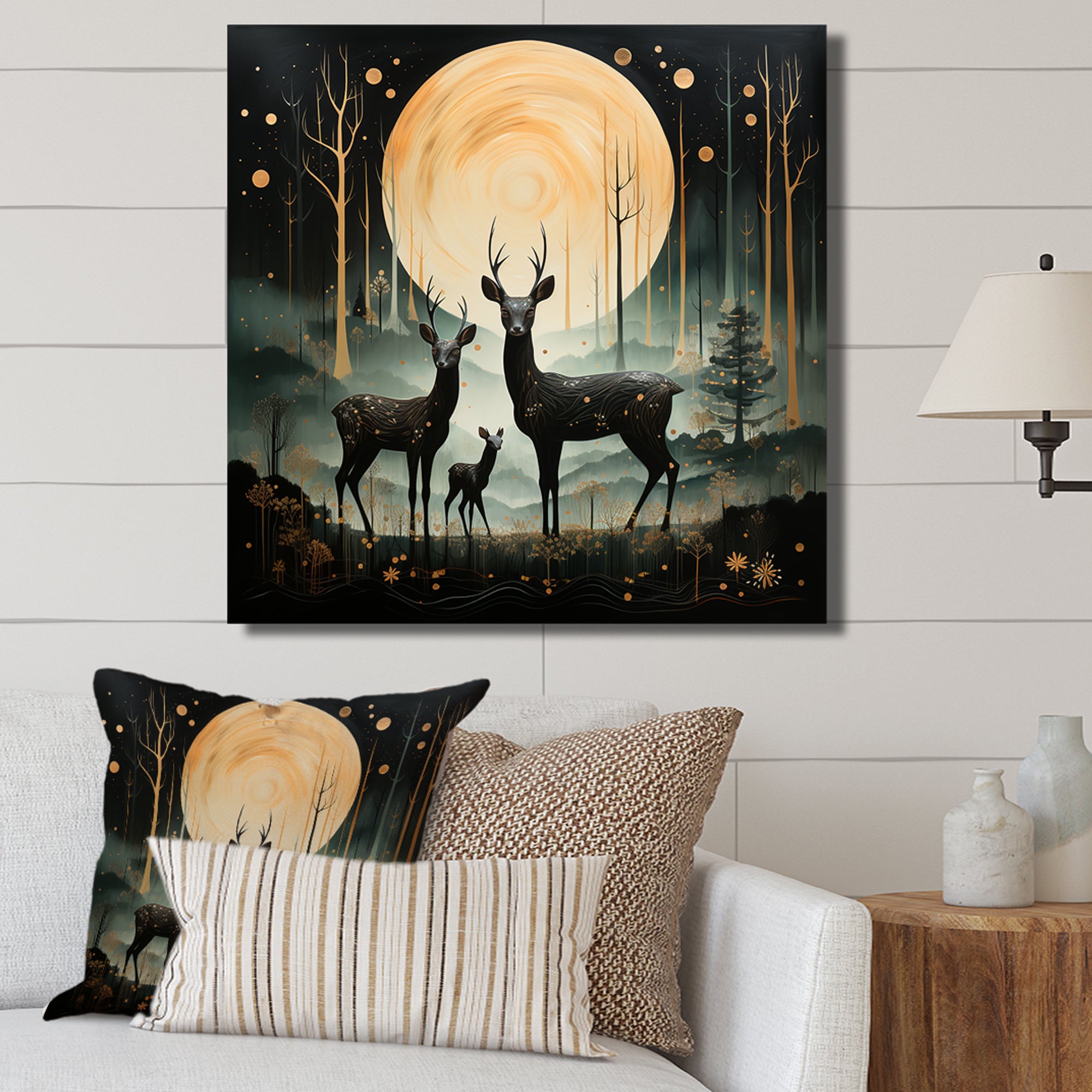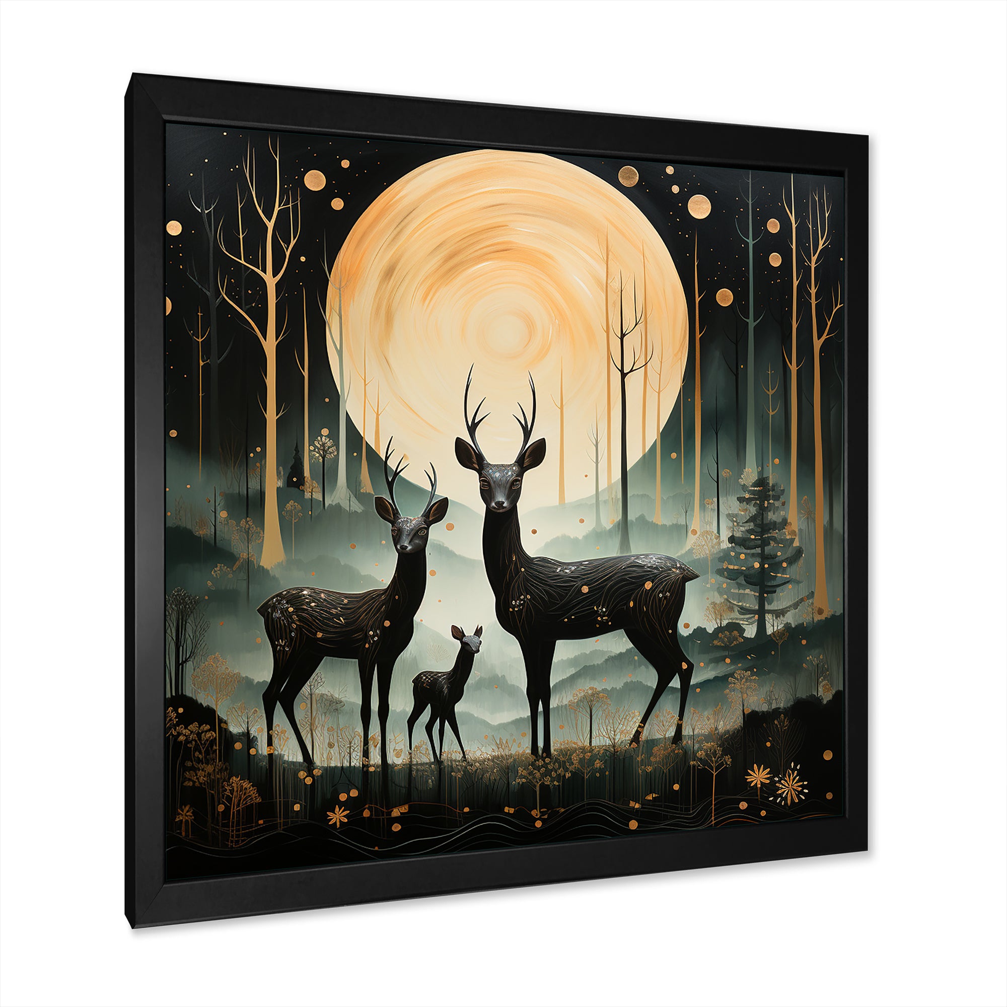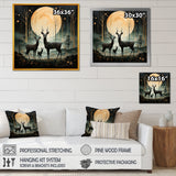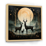Wondering night deer family elegance - Deer Landscape Canvas Wall Art