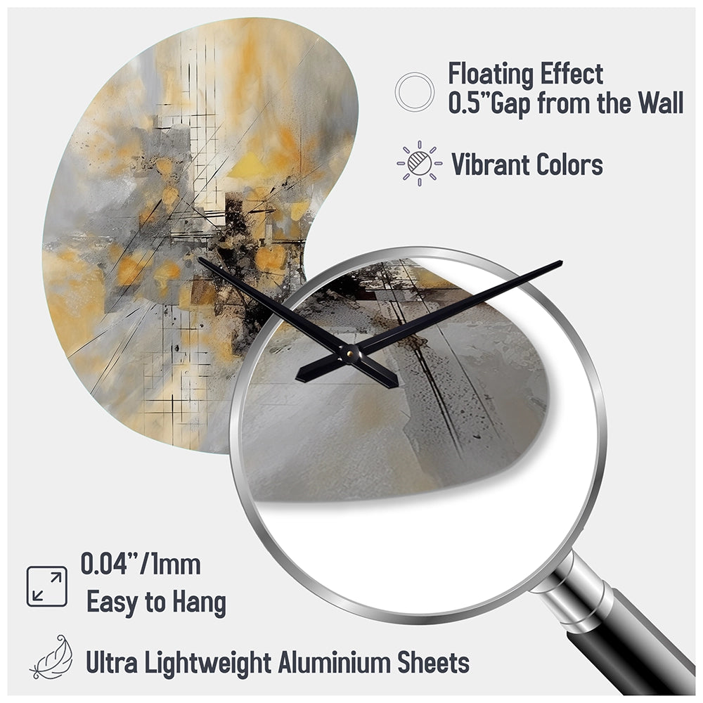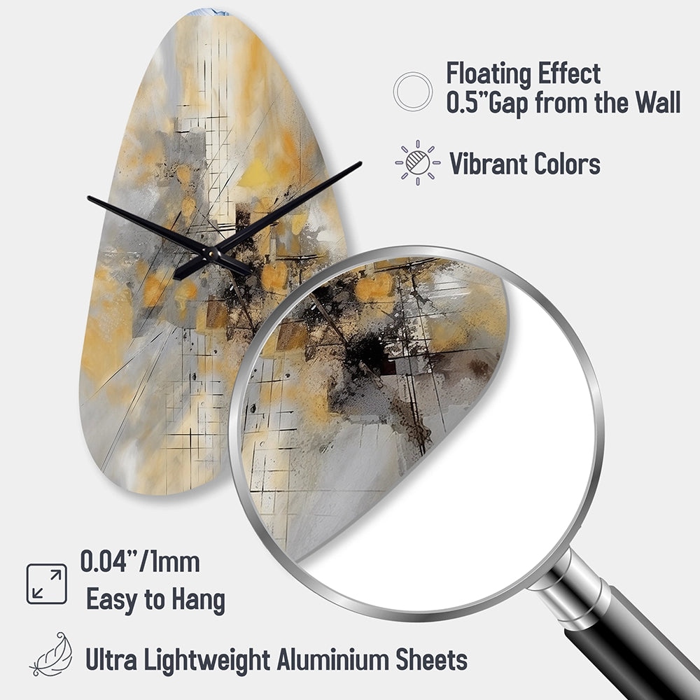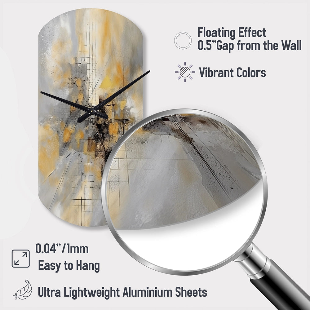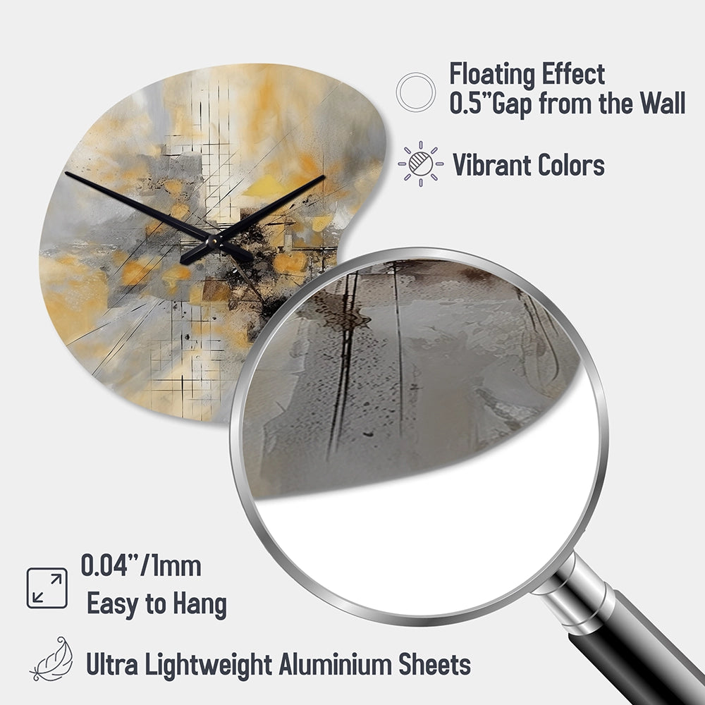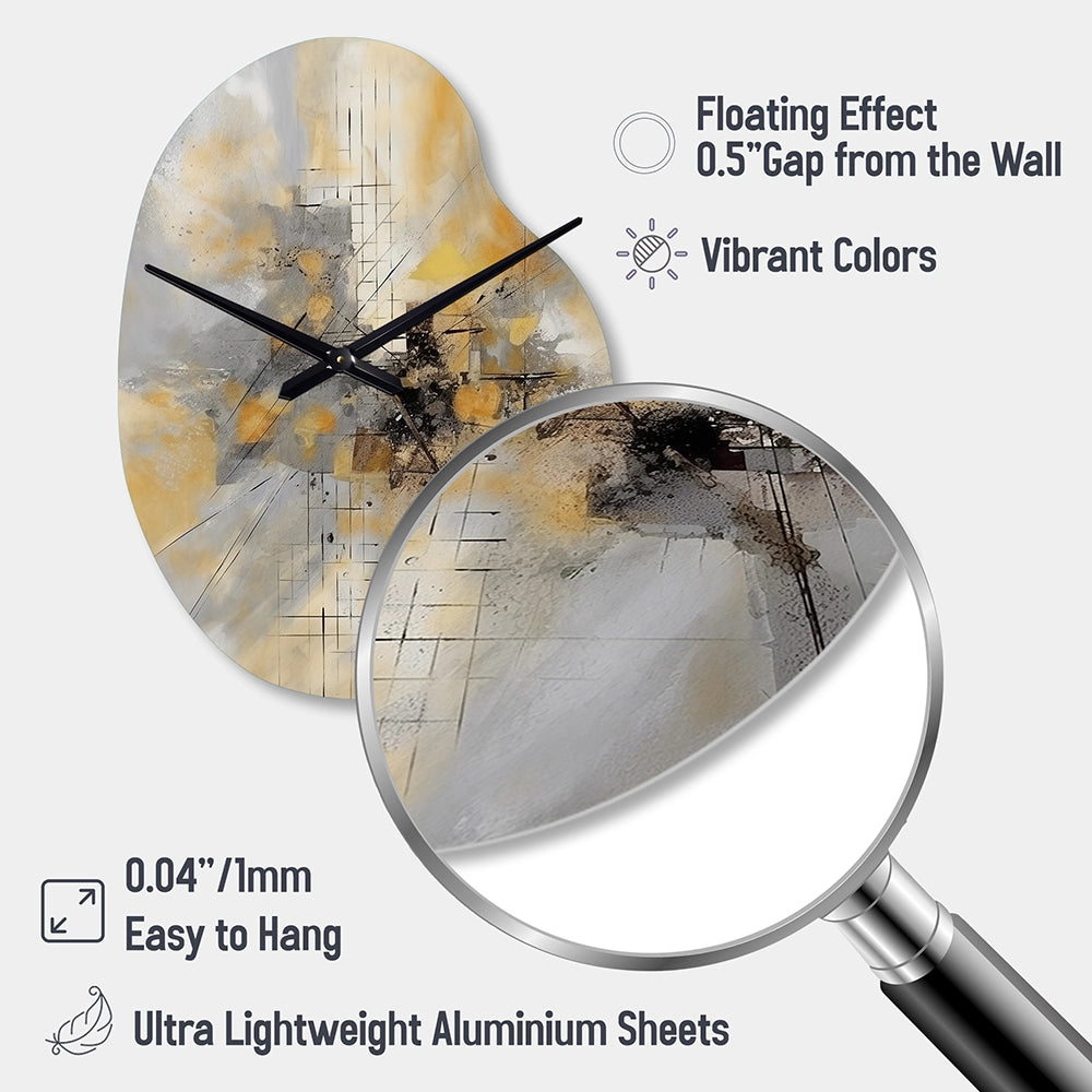 Yellow And Grey Beyond The Canvas I - Asymmetric Metal Wall Clock