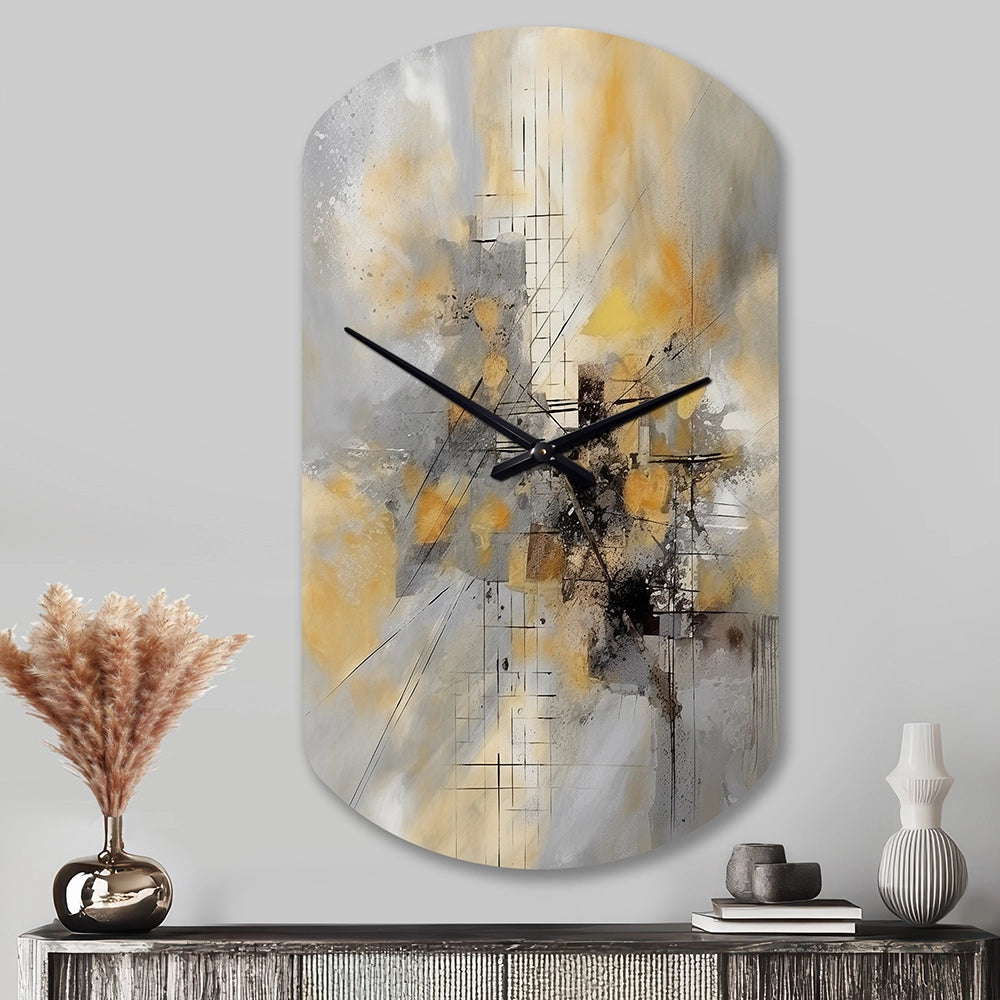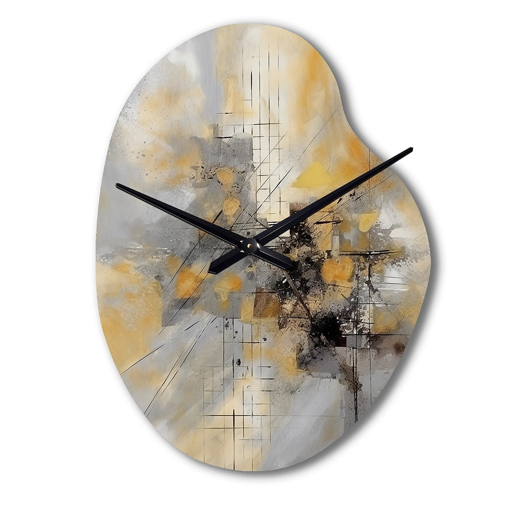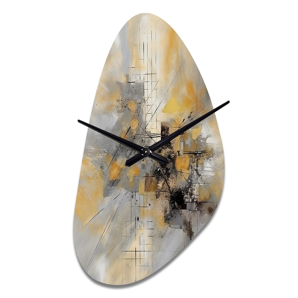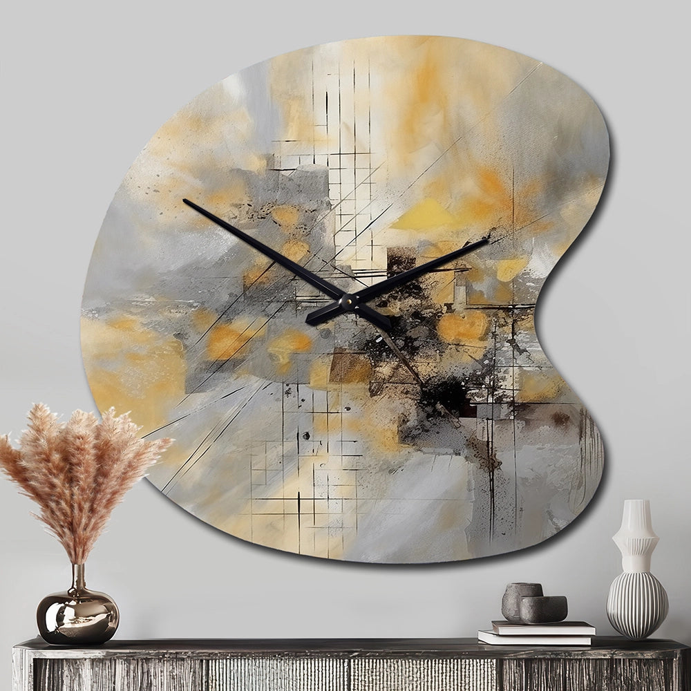 Yellow And Grey Beyond The Canvas I - Asymmetric Metal Wall Clock