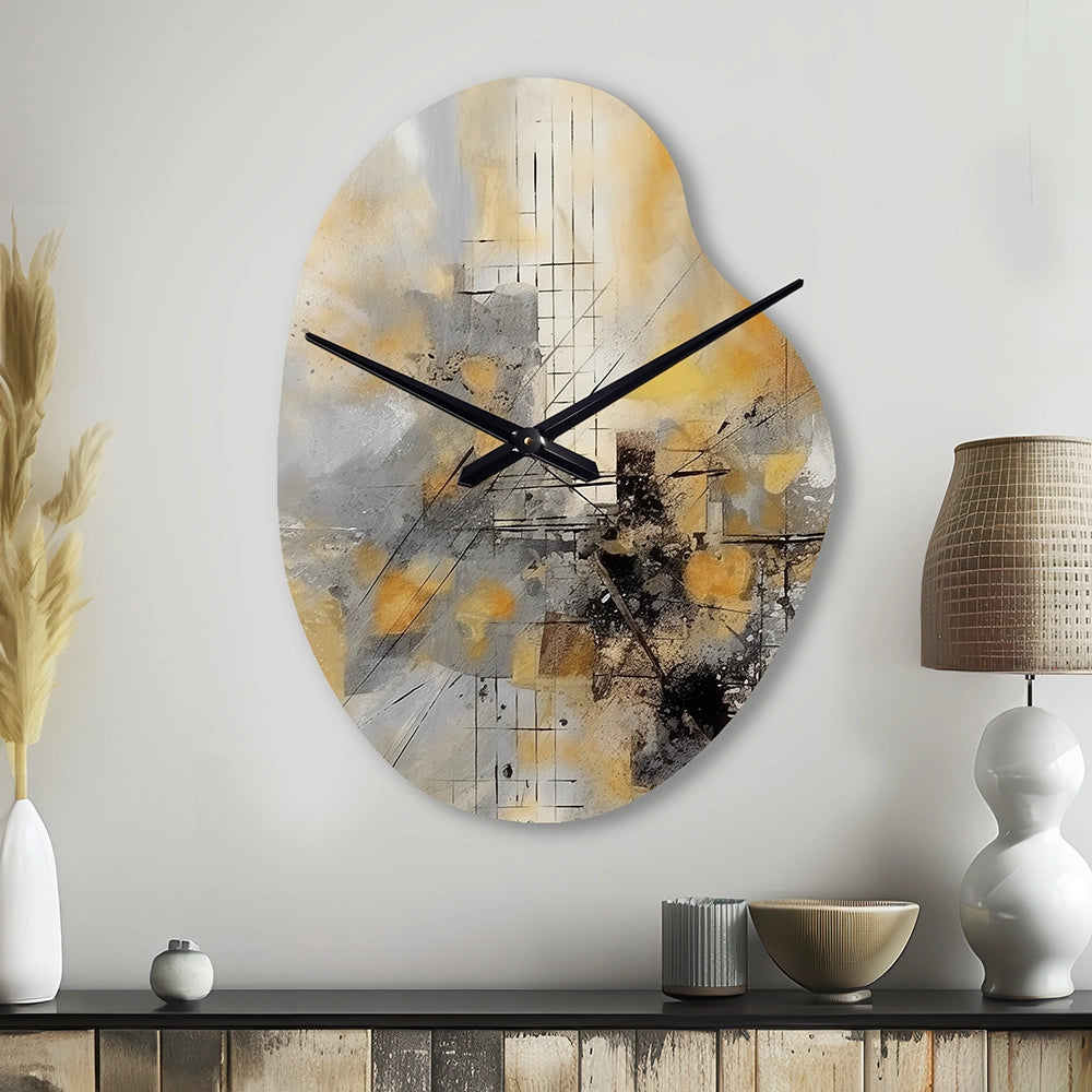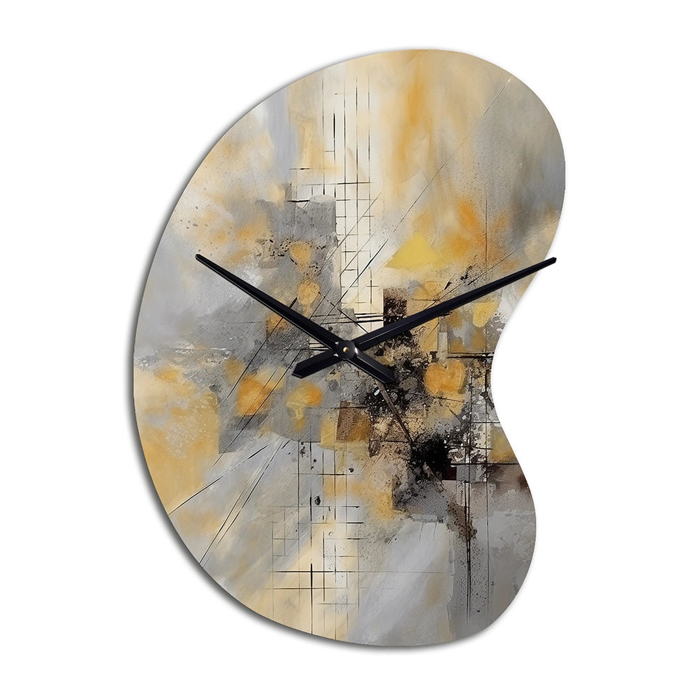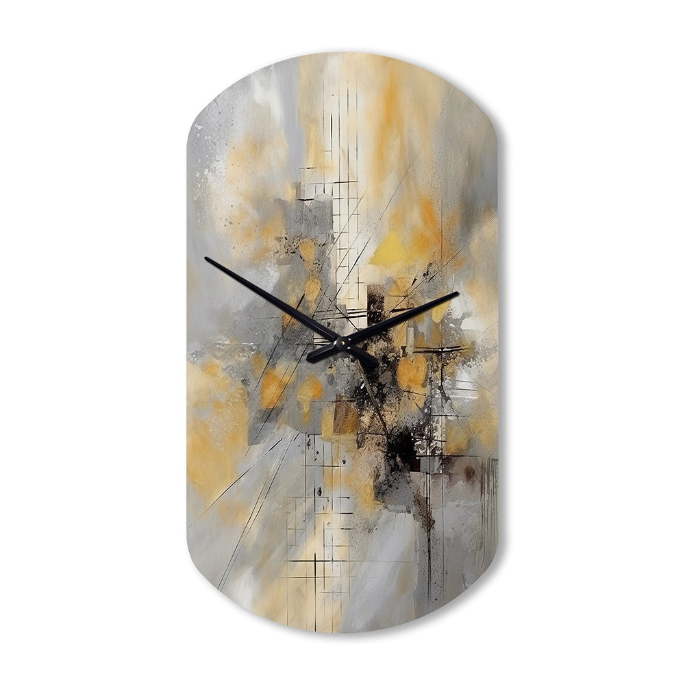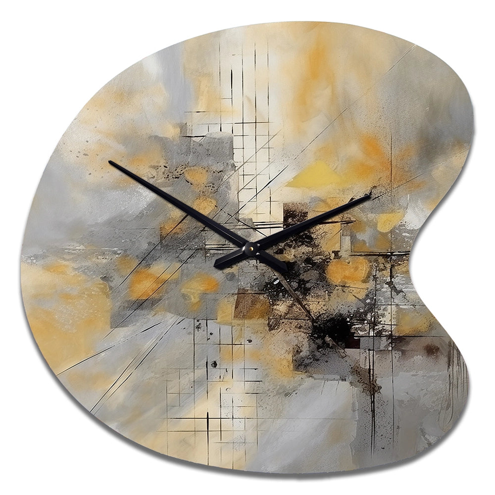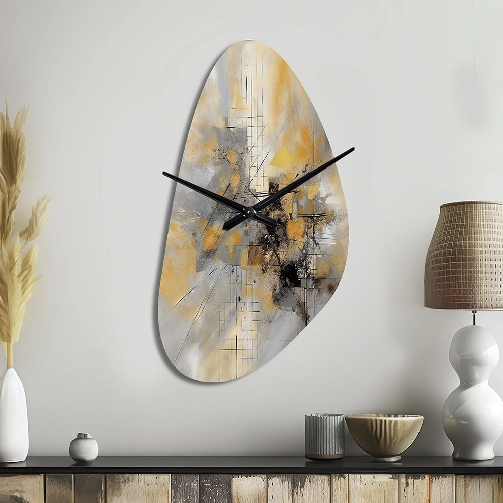 Yellow And Grey Beyond The Canvas I - Asymmetric Metal Wall Clock