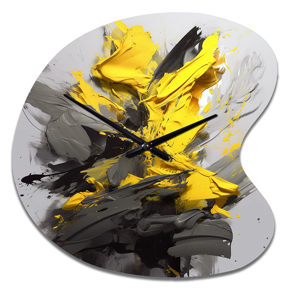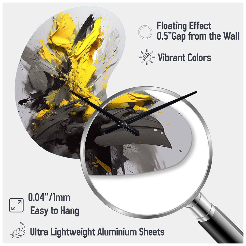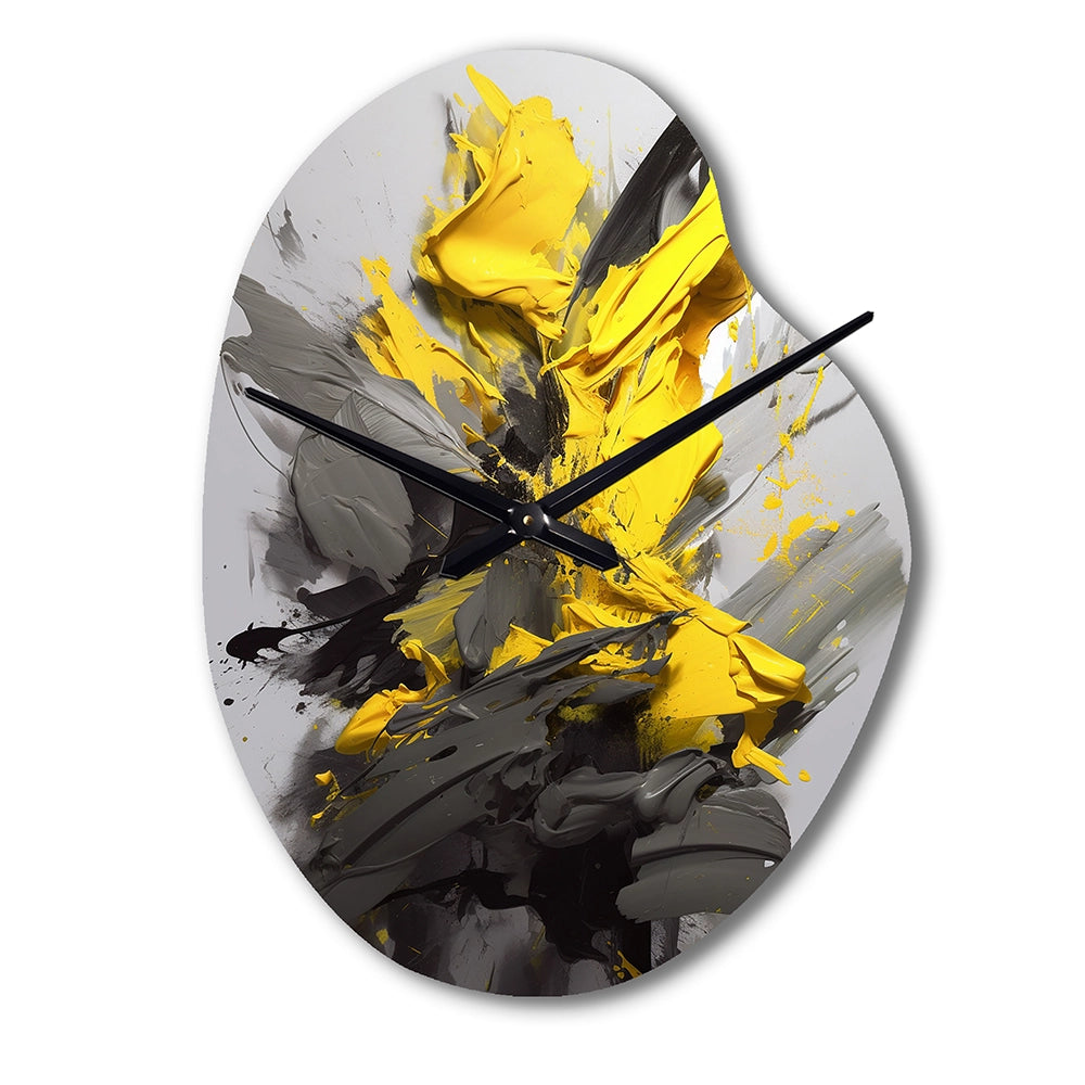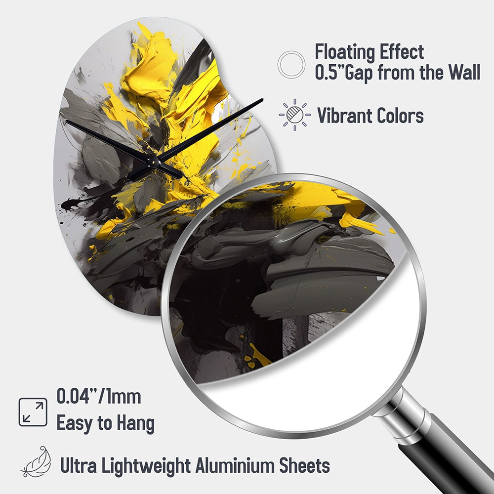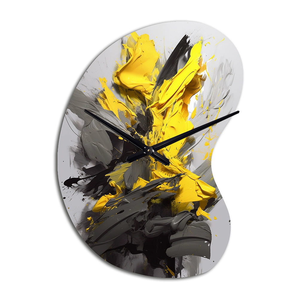 Yellow Grey Vibrant Swirls I - Asymmetric Metal Wall Clock