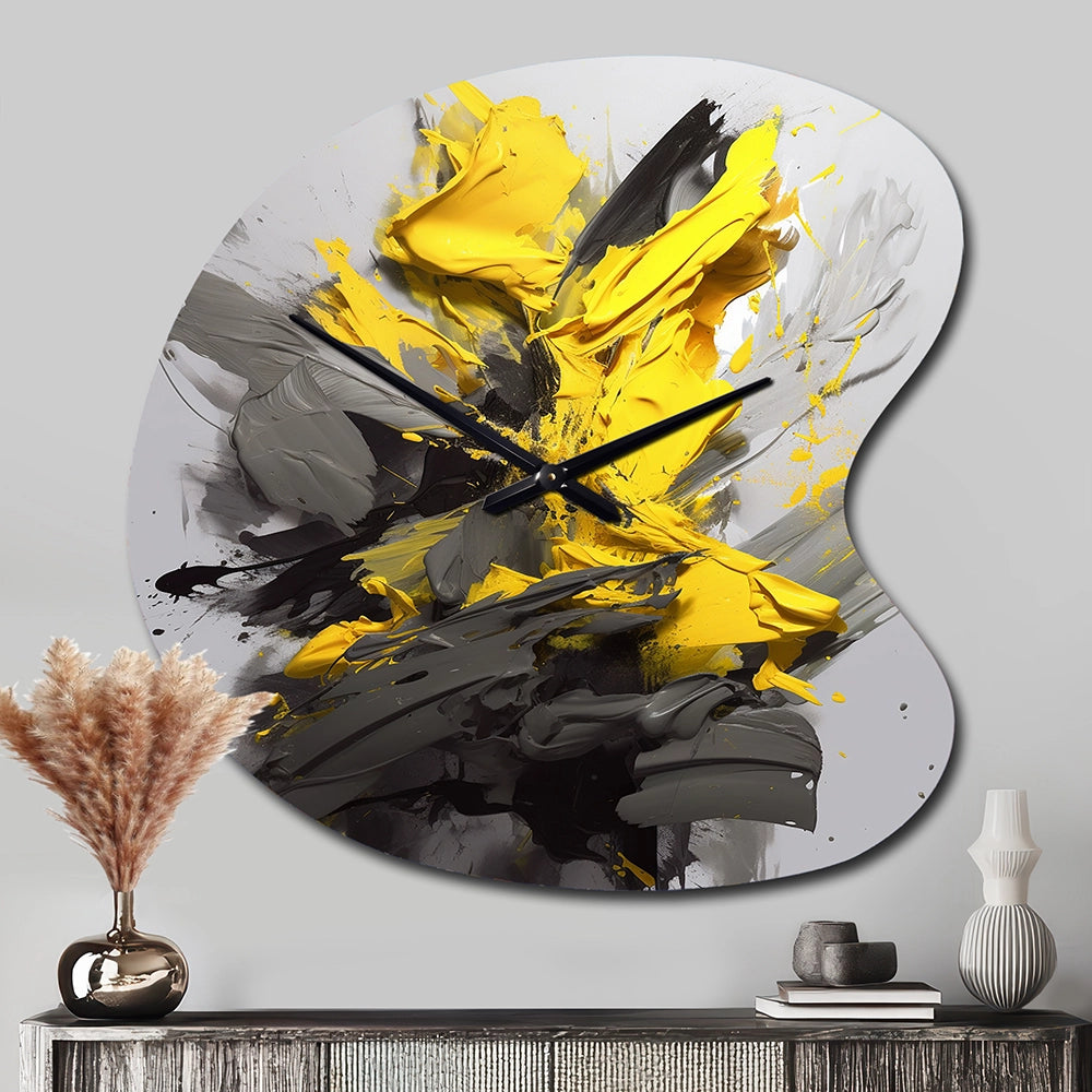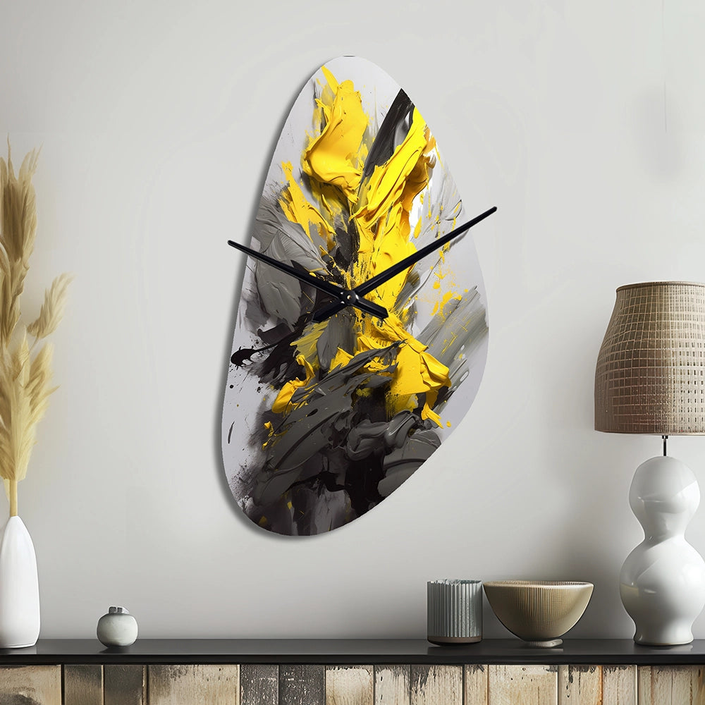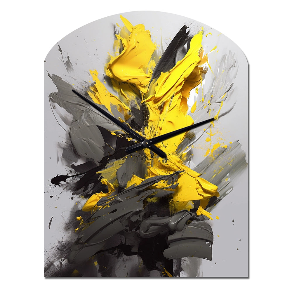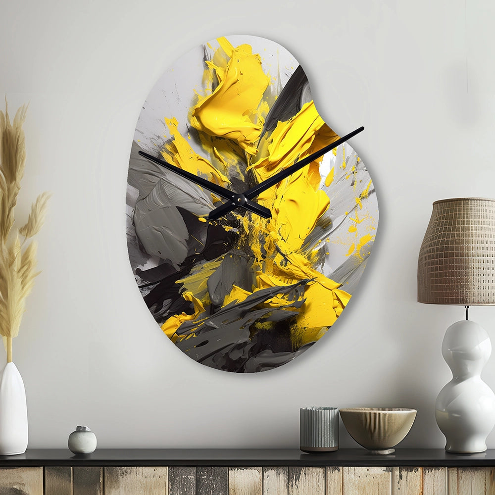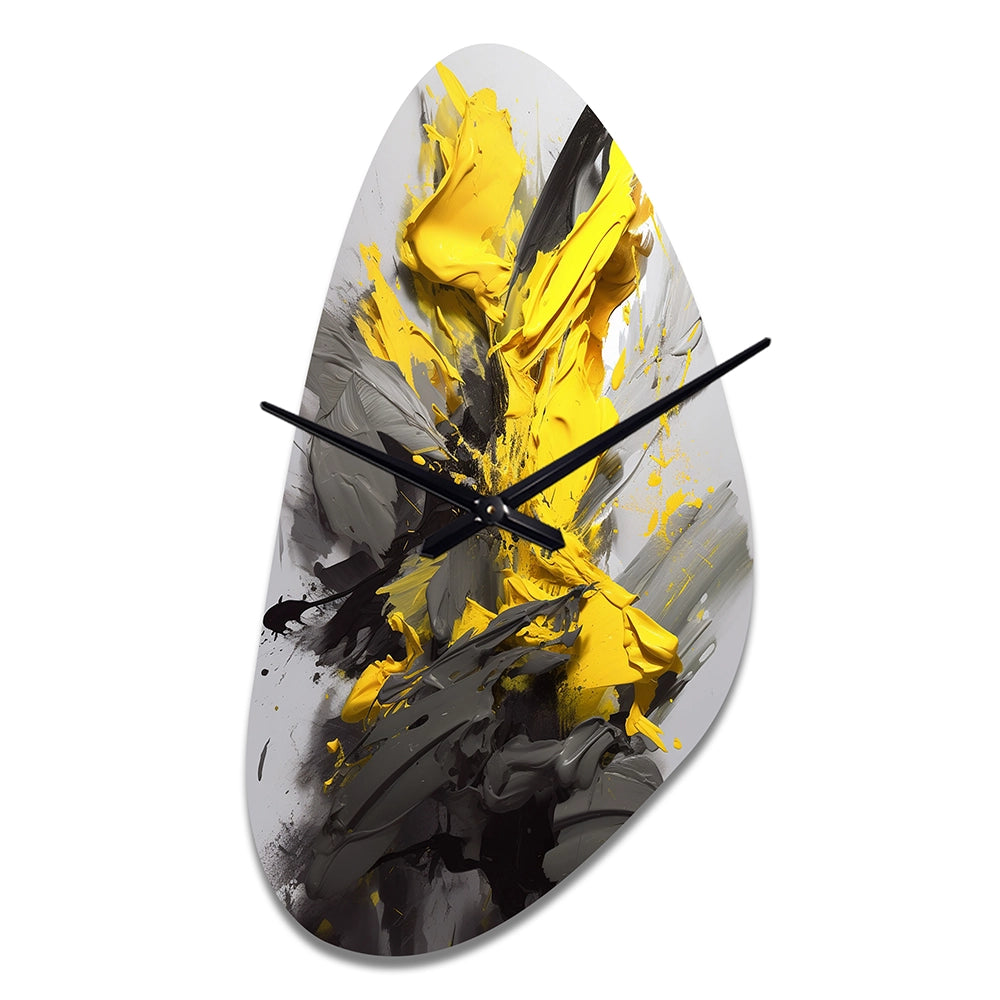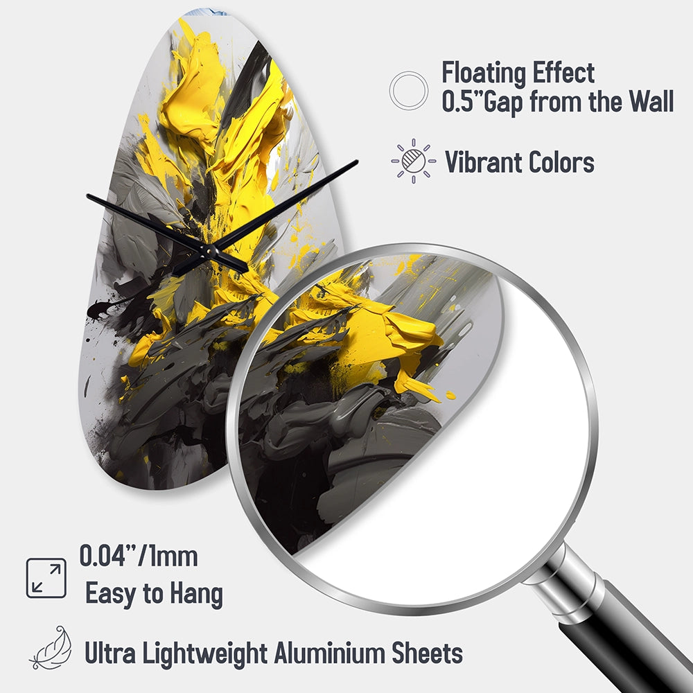 Yellow Grey Vibrant Swirls I - Asymmetric Metal Wall Clock