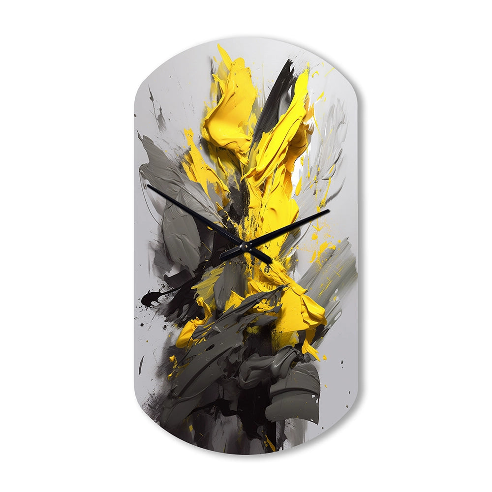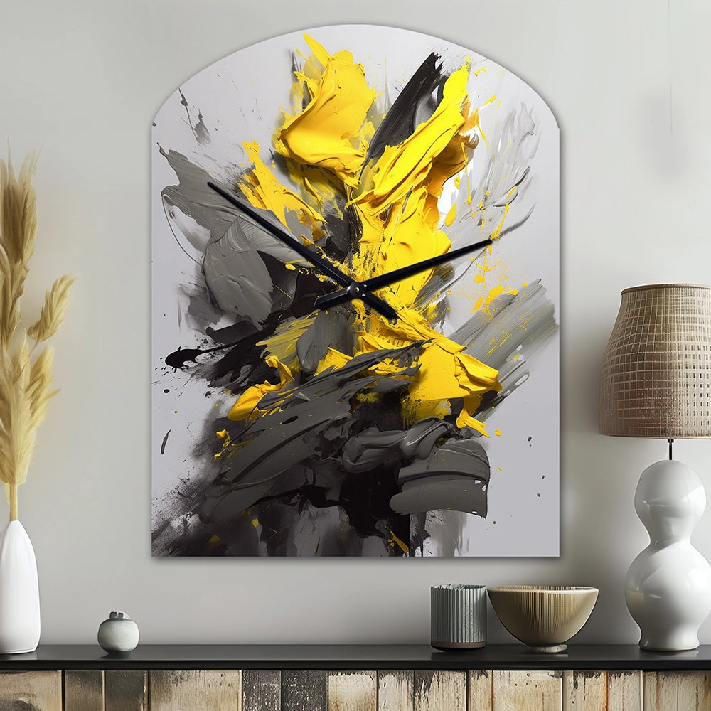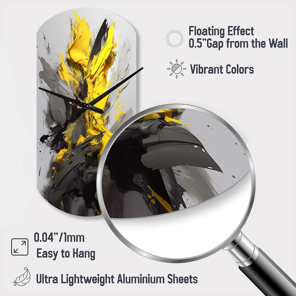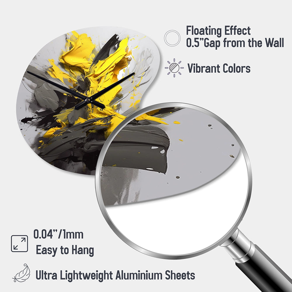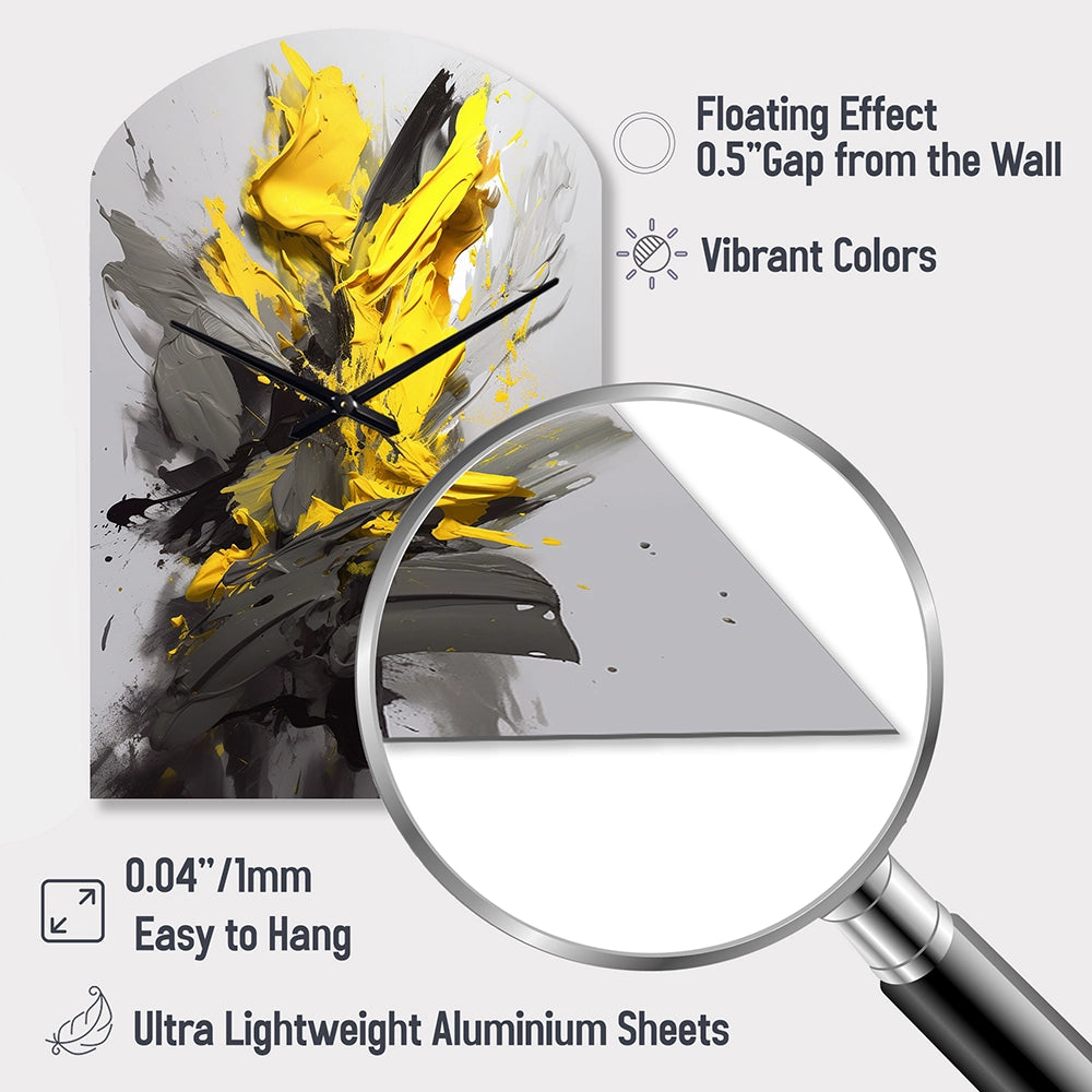 Yellow Grey Vibrant Swirls I - Asymmetric Metal Wall Clock